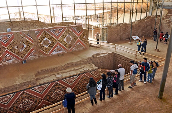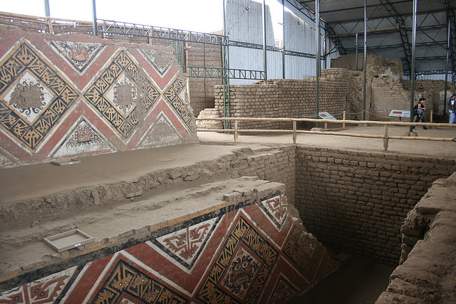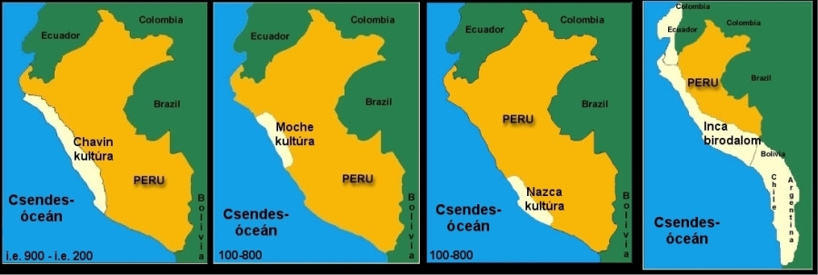 Ugrás a következő népcsoportra. Moche kultúra (aka Mochica). Peru északi részén volt jelen, kb. 100 és 800 között. Tudósok szerint ők nem voltak teljesen szervezett állam, vagy birodalom, inkább csak sok kis falu/közösség az óceánparton, közös kultúrával. Jellemzők: nagyon fejlett kézművesség, szépen festett agyagtárgyak, kiváló arany megmunkálás, ügyes csatornarendszerek, agyagtégla épületek. Két nagy templom-szerű építményük maradt fenn, a Nap és a Hold templom (Huaca del Sol, Huaca de la Luna).