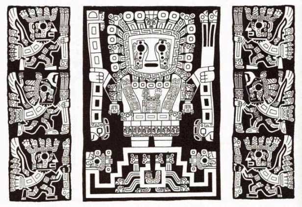 A kapun Viracocha-t körülveszi 48 négyzet alapú szárnyas "kísérő", akiknek a mintáját szintén megtaláltam a játékban, sőt a vízszintes rész alján lévő "sorminta" is több helyen előkerül a játékban. 32-nek emberi feje van, 16-nak madár, valószínűleg kondor, és mindegyik a középső figura felé néz.
