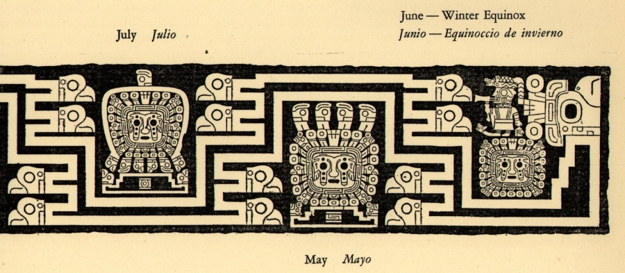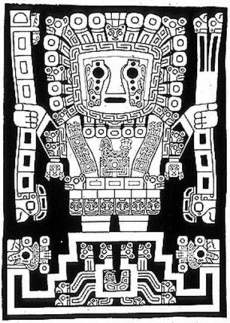 Viracocha: az inka és inka-előtti időkben őt tartották minden teremtőjének, a fő istennek. Ő hozta létre a földet, a csillagokat, a Holdat, a civilizációt. Az ábrákon a Napot viseli koronaként, kezében villámokat tart, és szeméből eső folyik. Itt is érződik az erős természethez való kötődés. |
