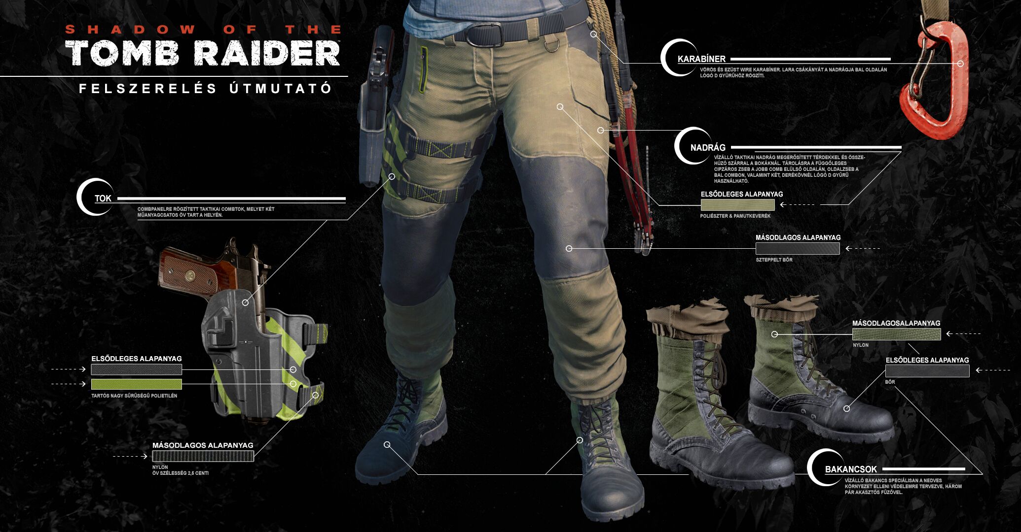 Lara felszerelése a Shadow of the Tomb Raiderben