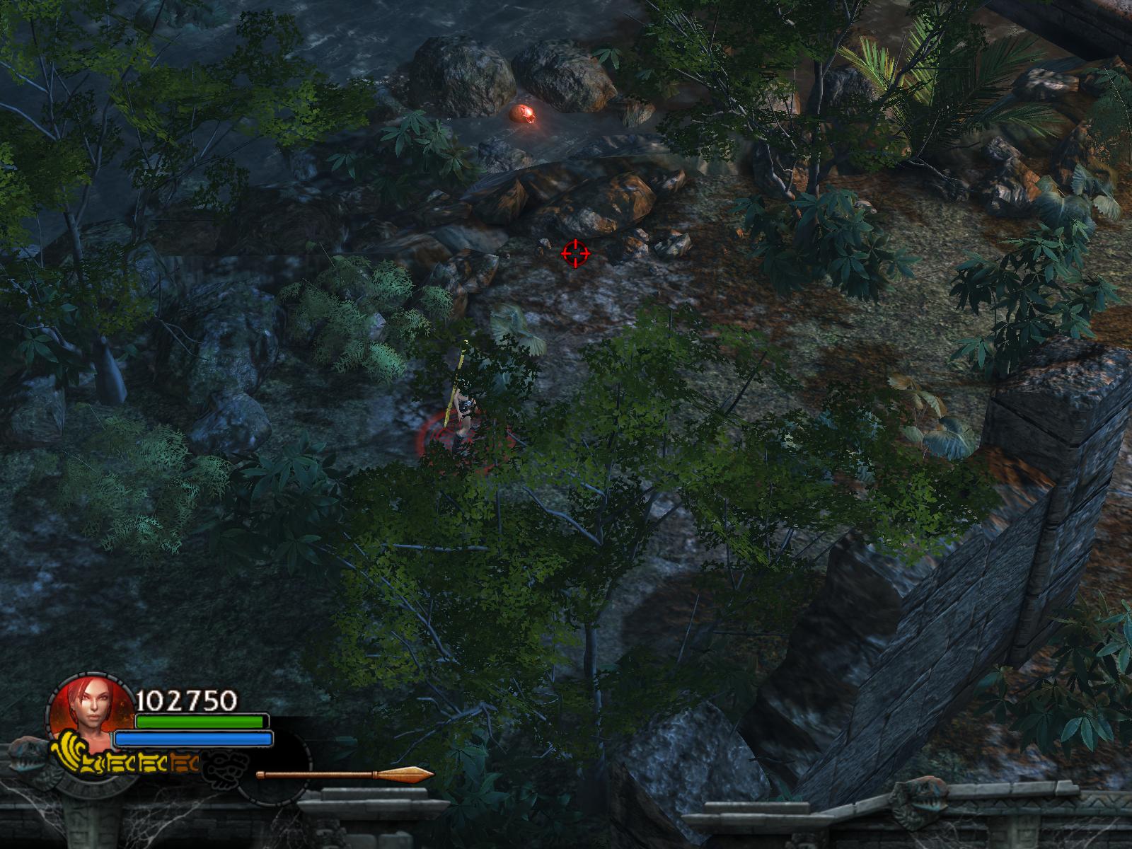Menj le a lépcsőn, és jobbra is, balra is gyémántokat fogsz találni. Persze ennek hátránya is van mindig. Ha összeszedted mindet, pár ellenség mindig előkerül. Végezz hát a kis gyíkokkal, és menj most a lépcsővel szemben. No hát menj először jobbra, és vedd fel a fák alatt az 1. Vörös Koponyát.