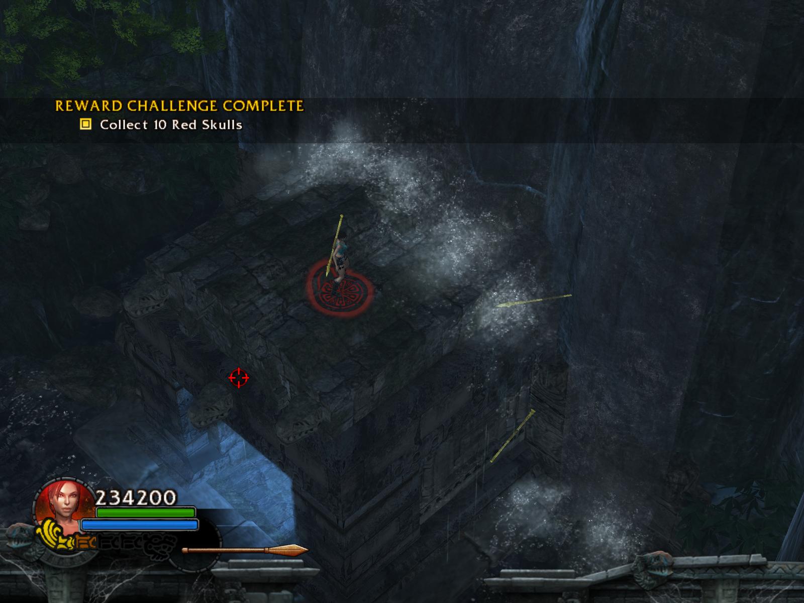 Mielőtt bemennél a kéken villódzó épületbe, jobbra, mellette dobj pár lándzsát a vízesés mögötti falba, és így feljutsz a sír tetejére, ahol megtalálod a 10. Vörös Koponyát.