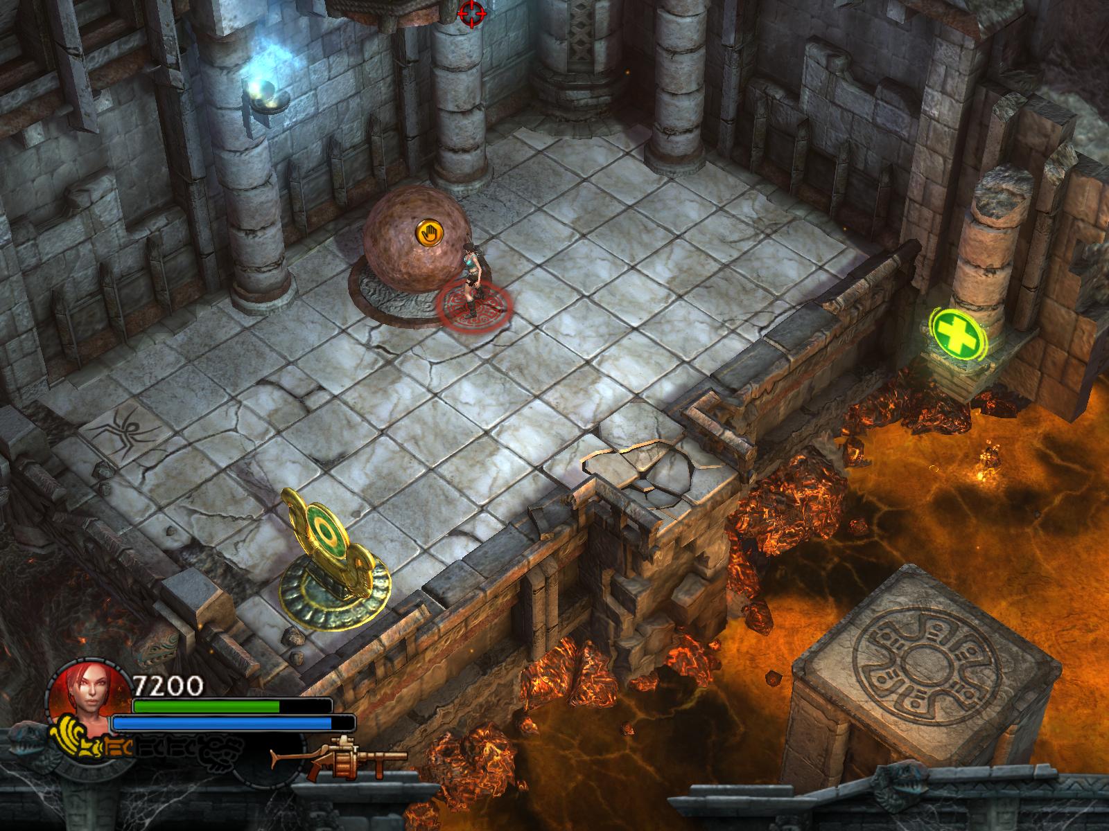 Lődd szét a vázákat, mert utánpótlást, kristályokat rejtenek. Elérsz egy zárt kapuhoz. Kicsit ismerős a helyszín., és a feladat is. A tüzekre kell tolni a golyókat. De hol vannak? Meg kell keresni.