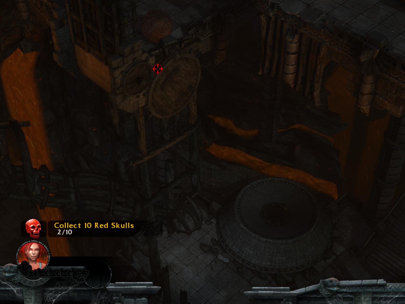 Menj vissza, a felső kis térre, ahol a golyót találtad. Ott jobbra, mássz le a létrán. Menj lefelé, dobj egy lándzsát az oszlopba, és feljutva a tetejére meglelted az 1.Vörös Koponyát.
