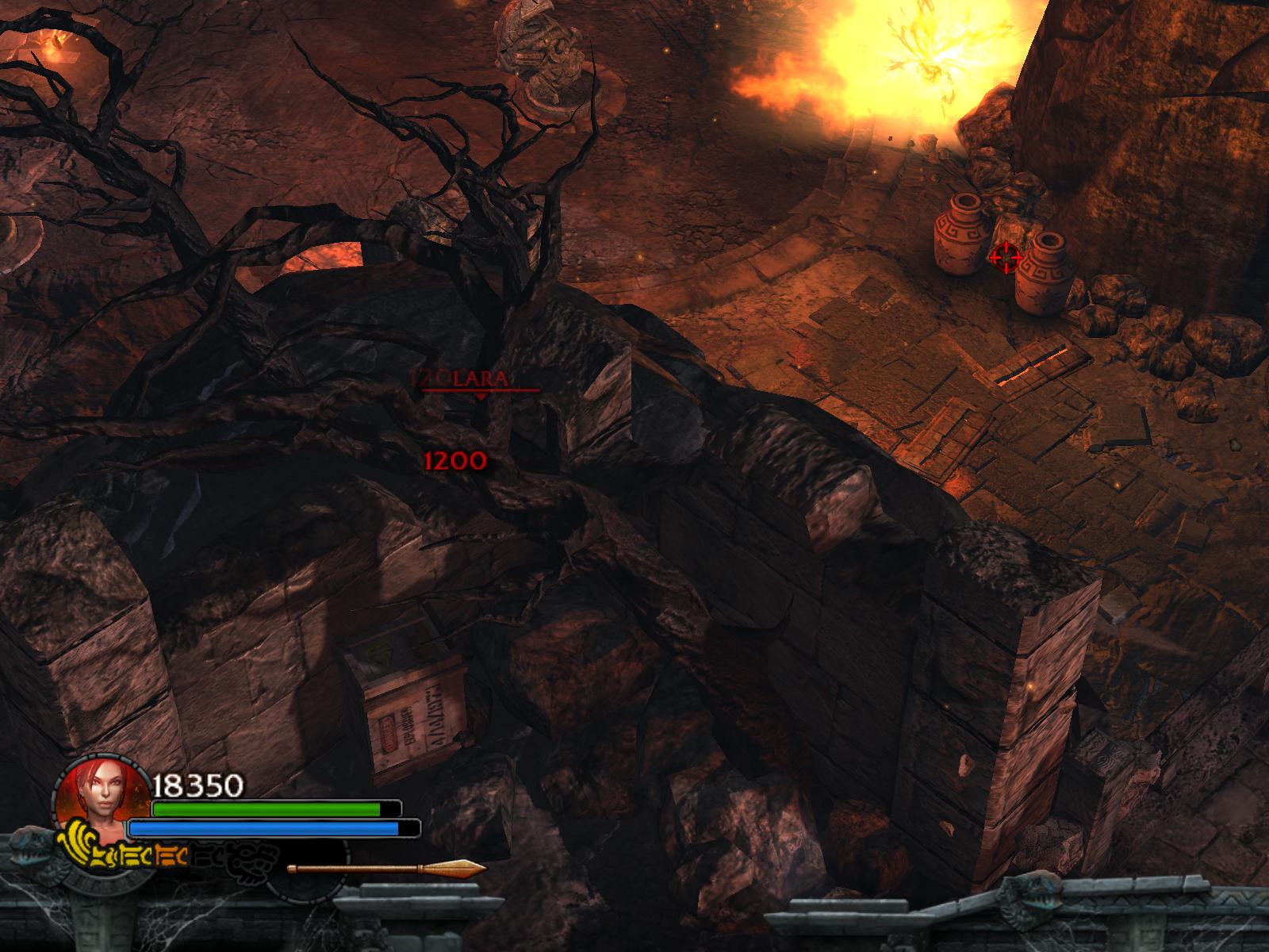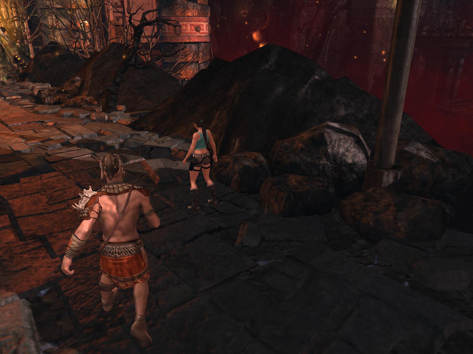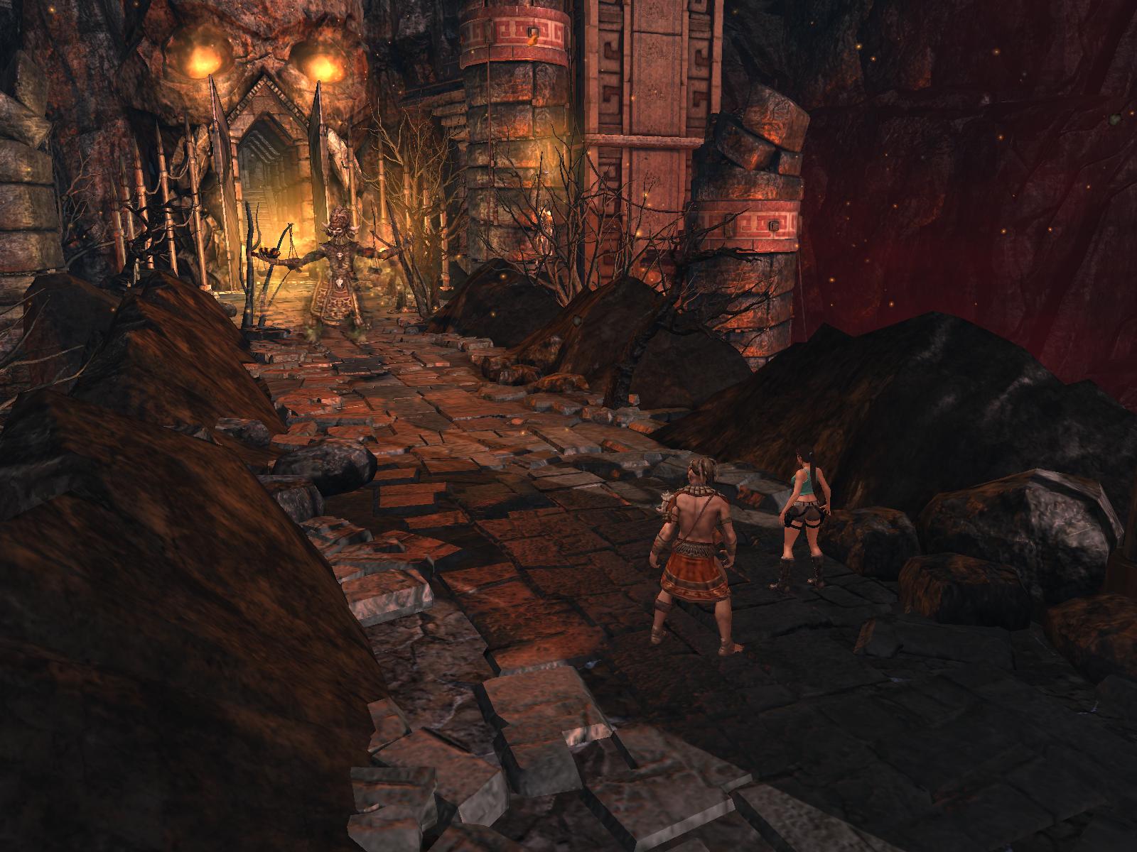 Kétfelé válnak, Lara Xolotl után ered, Totec marad a tűzdémonokkal harcolni.