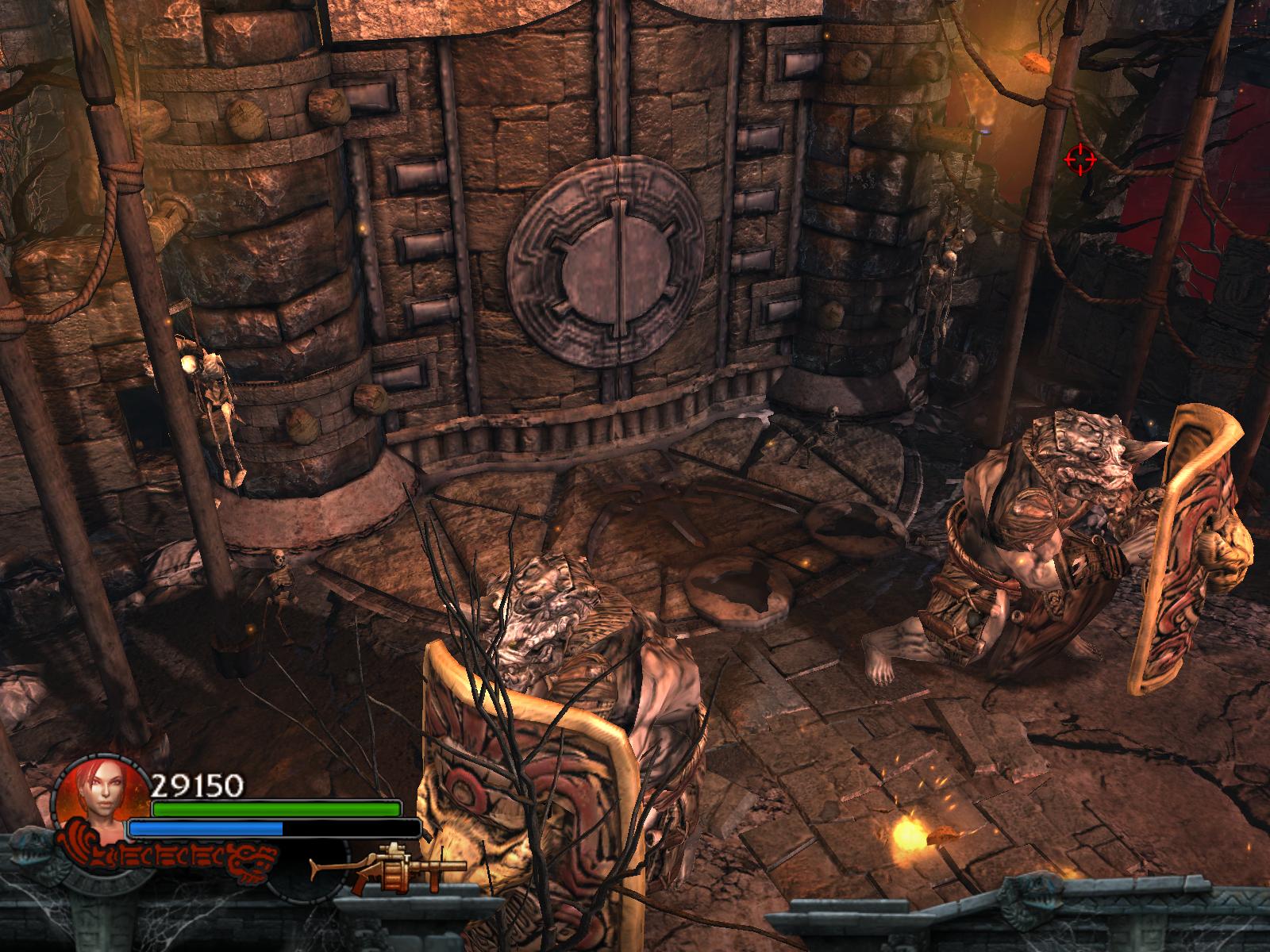 Fogd, és most a golyót a második tüzes foglalatra. Átmenve az átjárón, egy újabb óriás pajzsos döggel gyűlik meg a bajod, de ha végeztél,vele megtalálod a Dark Drum artifactot.