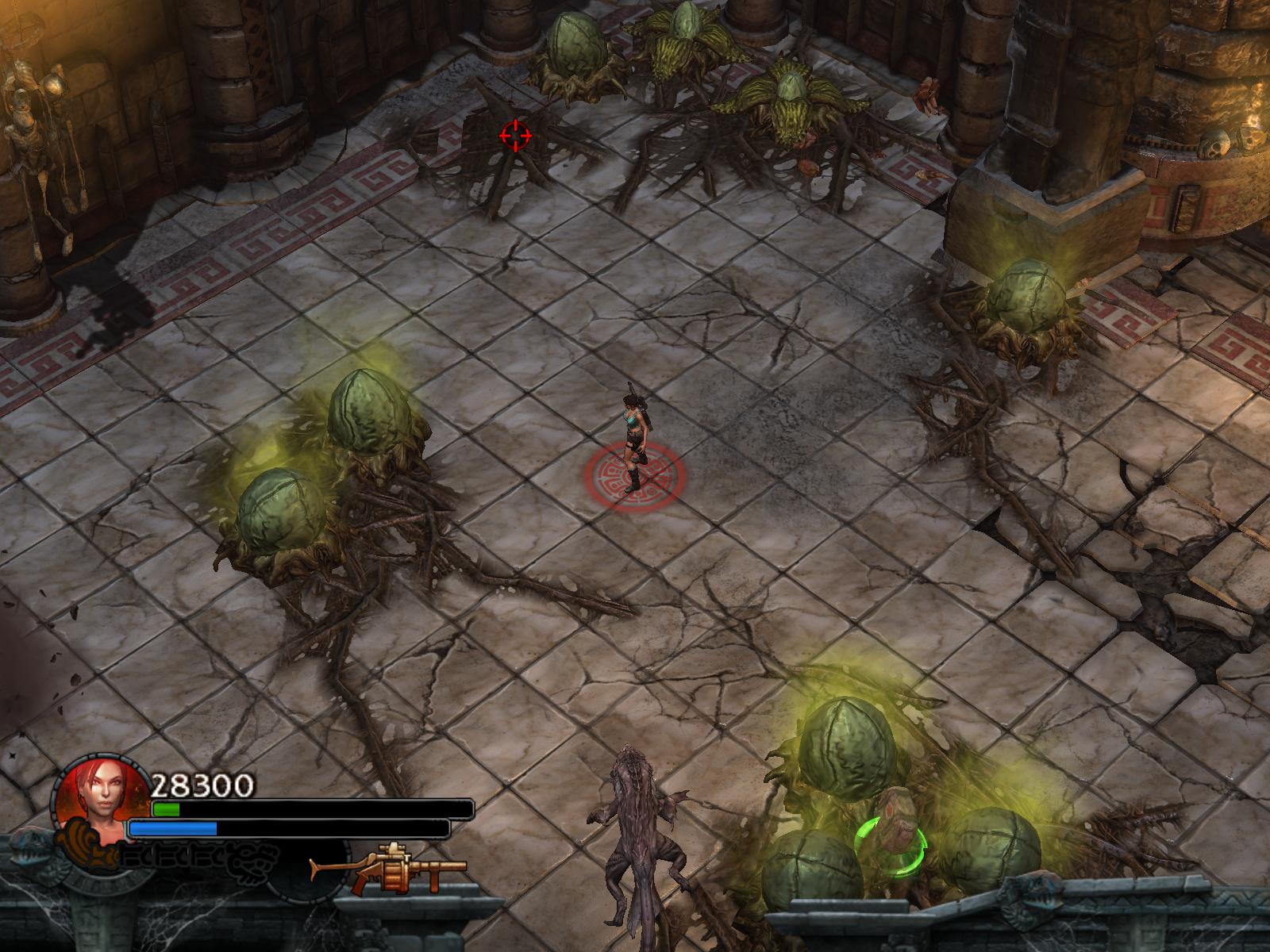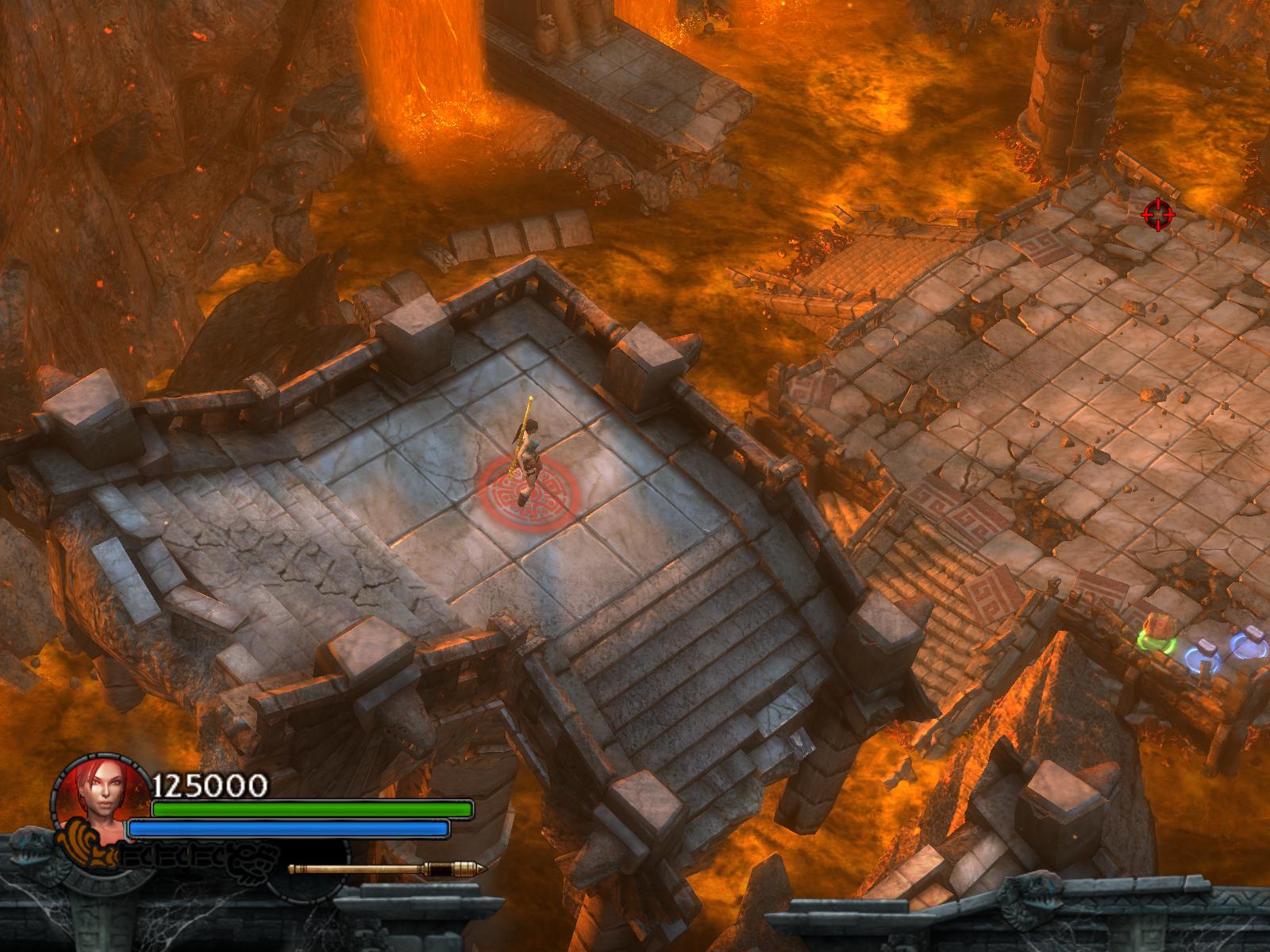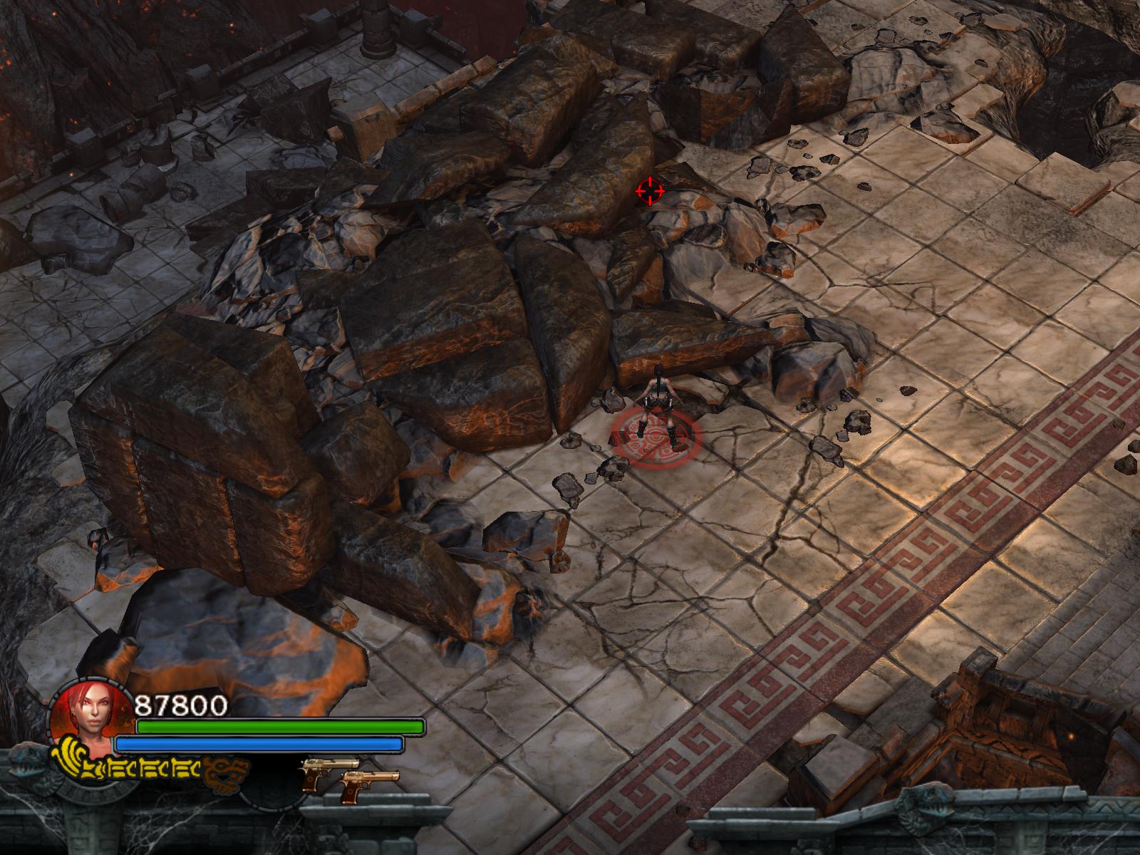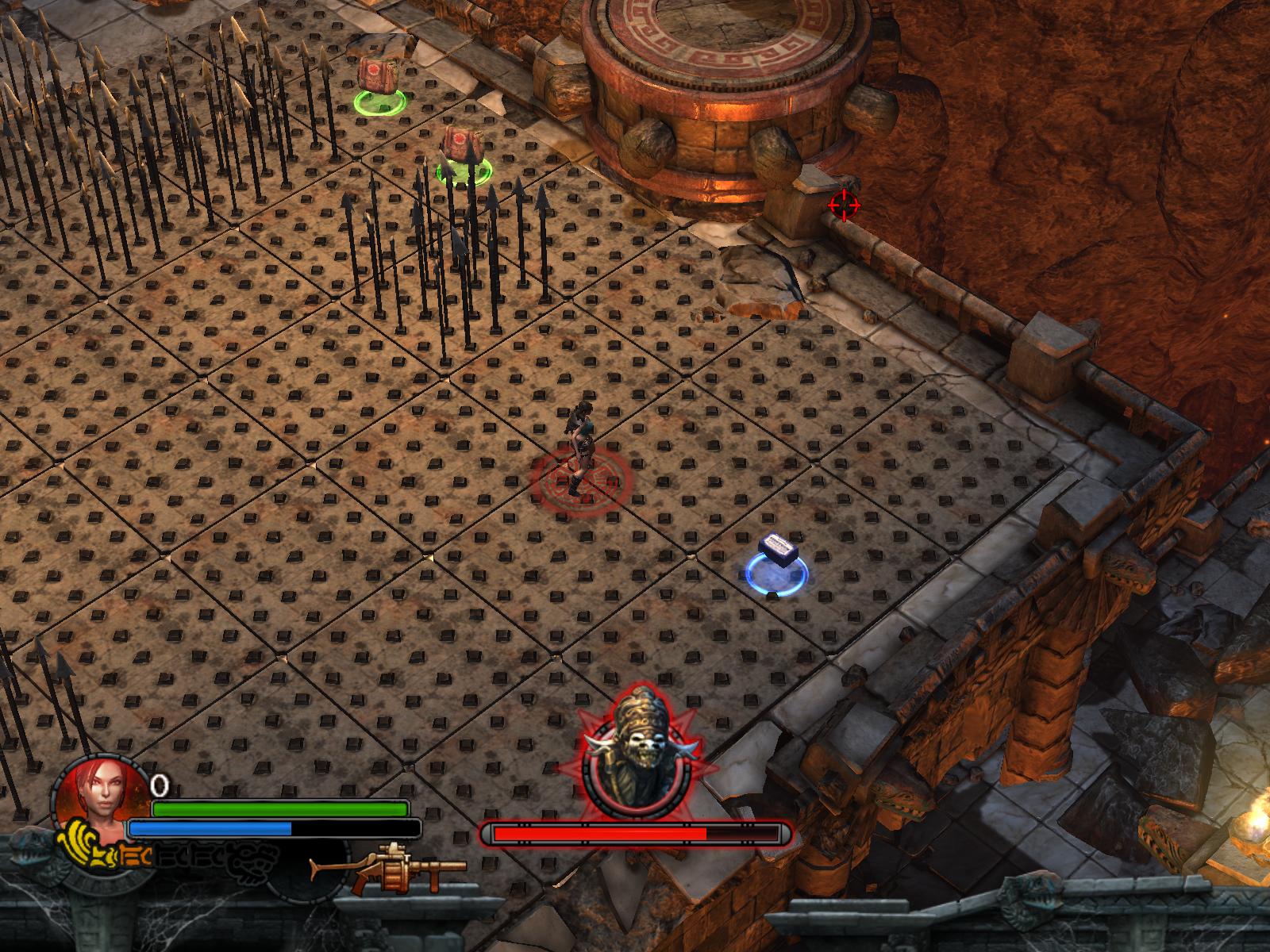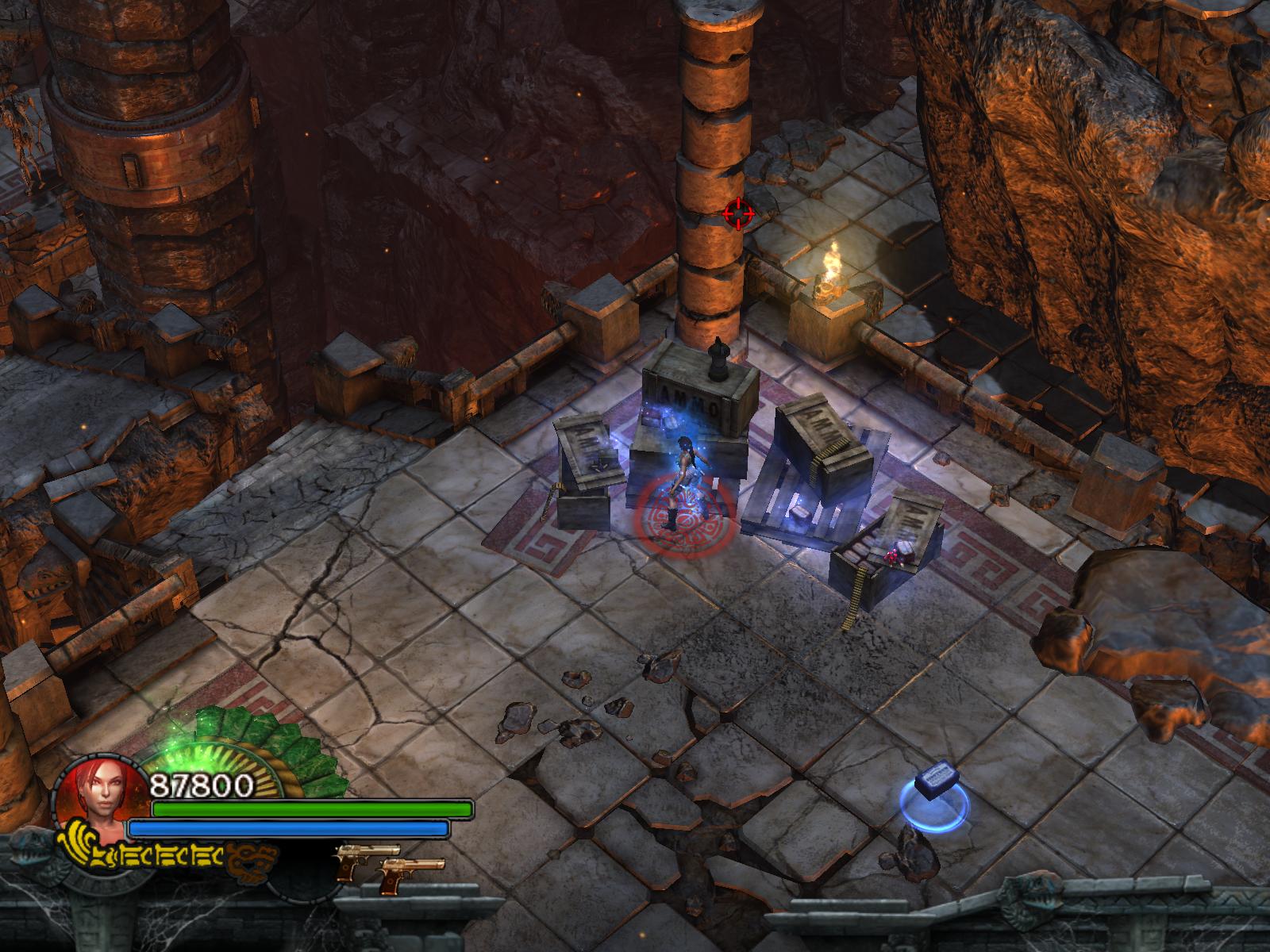 No akkor induljon a menet. Menj, és ugorj le a küzdőtérre. Megjelenik Xolotl, és működésbe hozza a csapdákat. Látod előre a felvillanó körökből, melyik padlólapok lesznek tüskések. Kerüld el azokat, de közben lőnöd is kell az istent, amikor két oldalt megjelenik. Ha elfogyott az energiacsíkja elmegy feltölteni magát, de addig is, pókok özöne ront rád, és a csapdák még ekkor is működnek. Még egyszer le kell csapolnod az energiacsíkját. A végén felmegy az emelvényére a főisten, és rád indítja a hengert. Óvatosan menj ki a tér oldalára, és amikor elment a henger, menj mögé, és ezzel vége is az első küzdelemnek. Van más mód is. Tegyél egy bombát a henger útjába, robbantsd fel amikor odaér, és a felemelkedett henger alatt futva átérsz. Ha nem bírod a gyűrődést, innen itt egy Mentés (Savegame)
