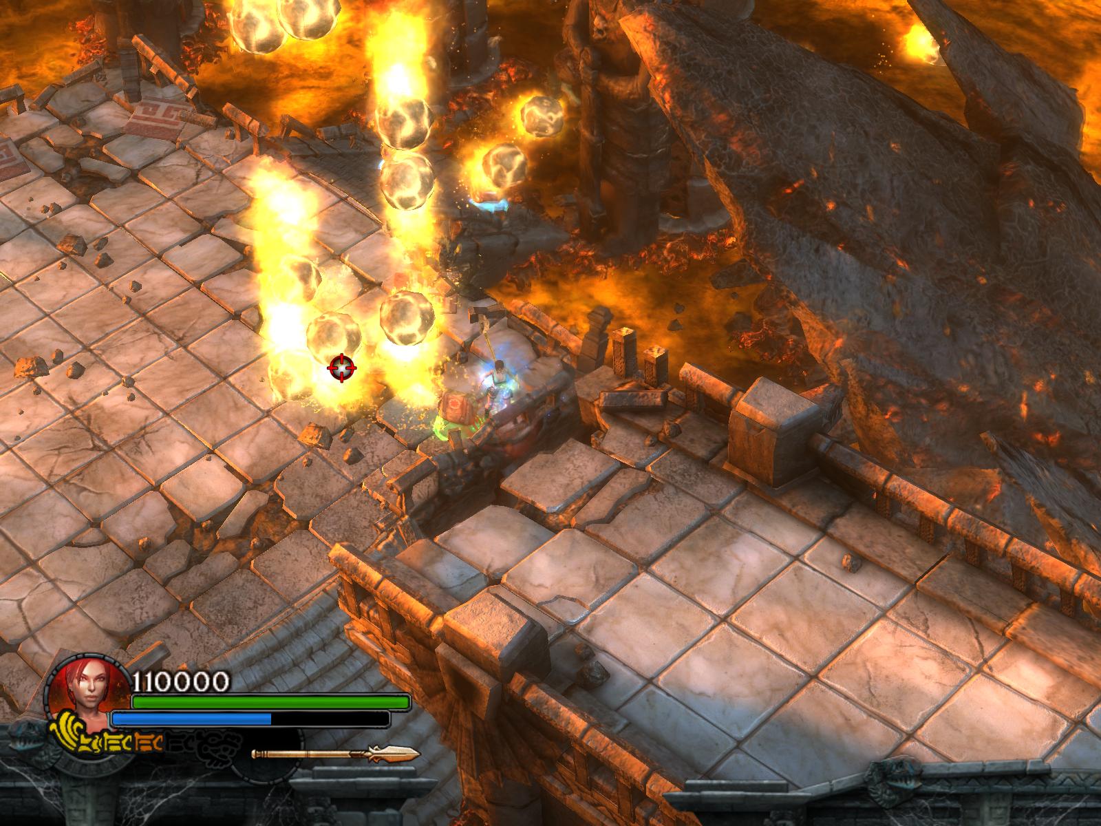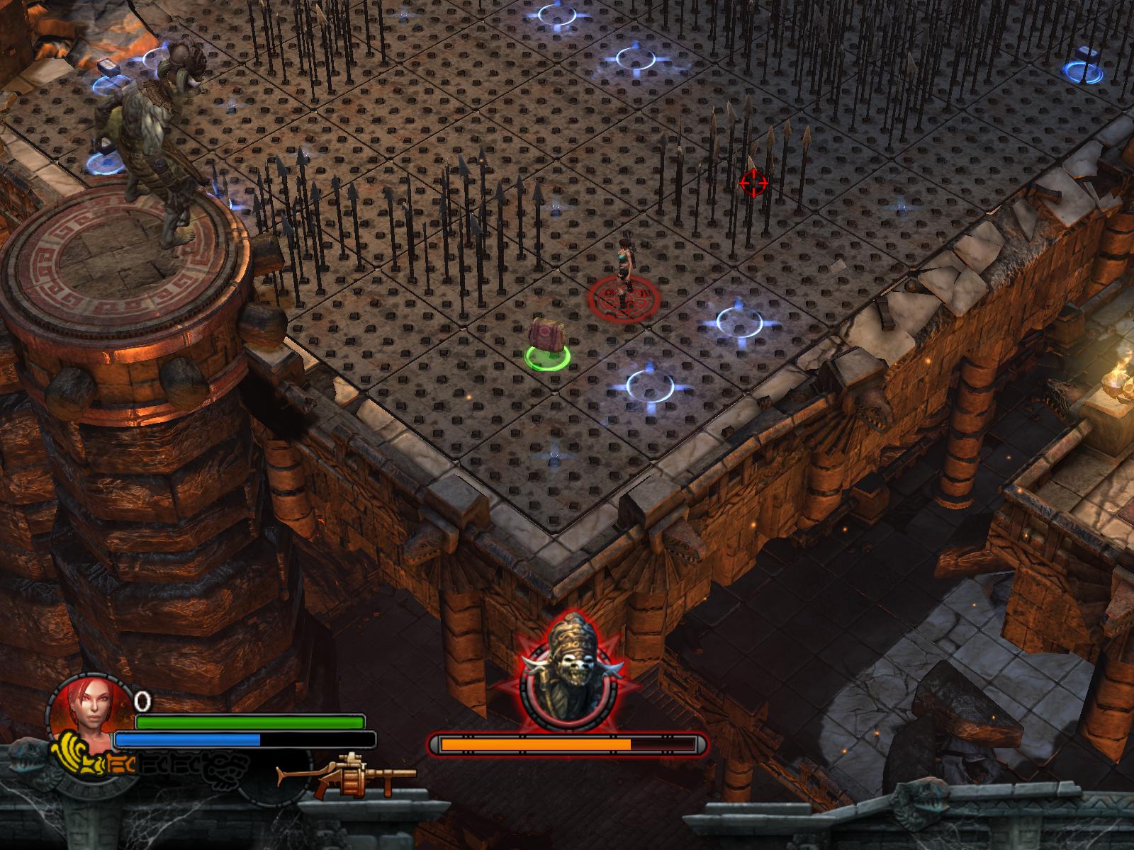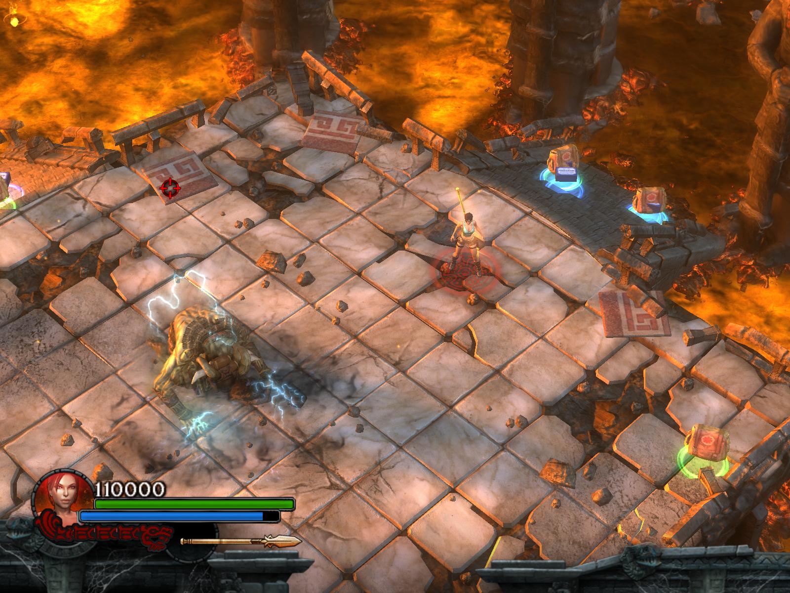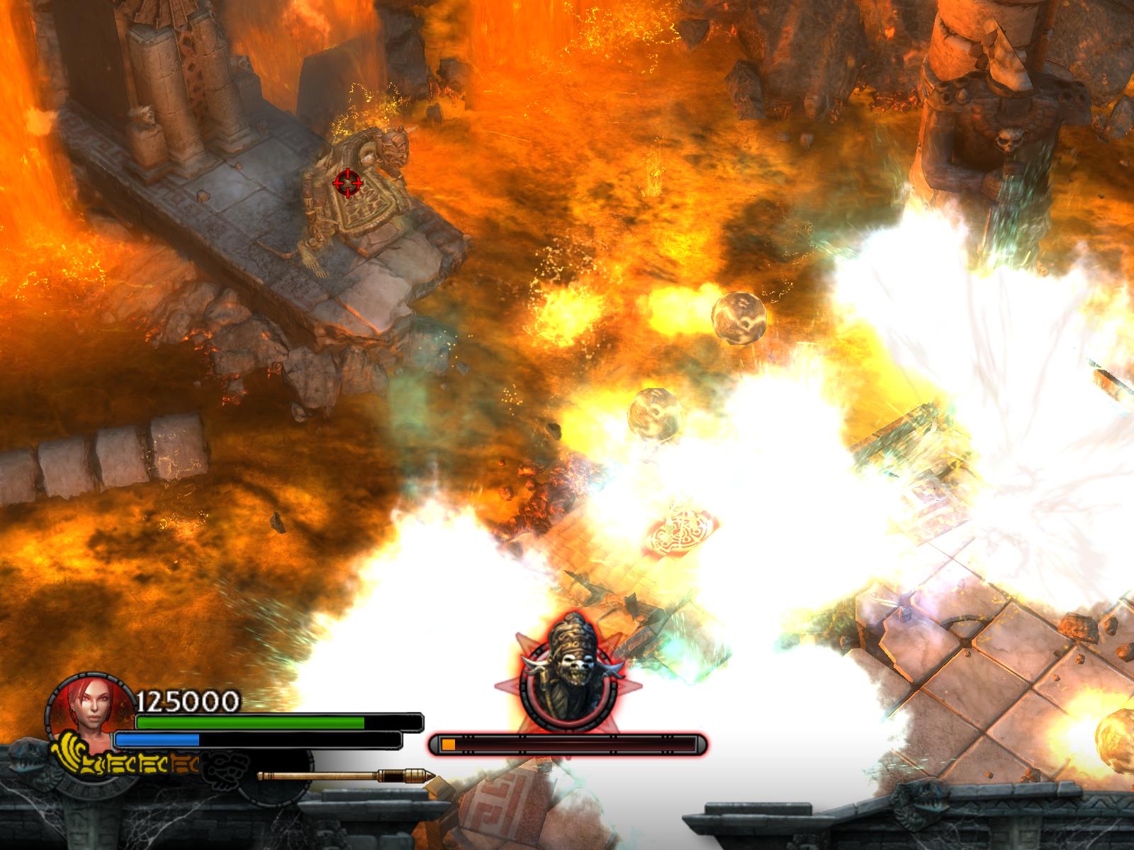 No akkor induljon a menet. Menj, és ugorj le a küzdőtérre. Megjelenik Xolotl, és működésbe hozza a csapdákat. Látod előre a felvillanó körökből, melyik padlólapok lesznek tüskések. Kerüld el azokat, de közben lőnöd is kell az istent, amikor két oldalt megjelenik. Ha elfogyott az energiacsíkja elmegy feltölteni magát, de addig is, pókok özöne ront rád, és a csapdák még ekkor is működnek. Még egyszer le kell csapolnod az energiacsíkját. A végén felmegy az emelvényére a főisten, és rád indítja a hengert. Óvatosan menj ki a tér oldalára, és amikor elment a henger, menj mögé, és ezzel vége is az első küzdelemnek. Van más mód is. Tegyél egy bombát a henger útjába, robbantsd fel amikor odaér, és a felemelkedett henger alatt futva átérsz. Ha nem bírod a gyűrődést, innen itt egy Mentés (Savegame)