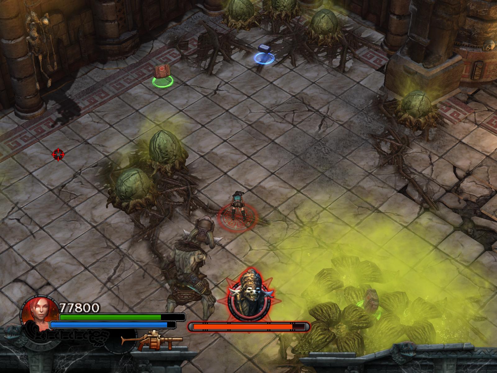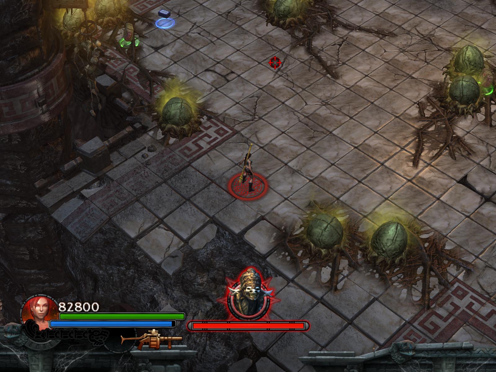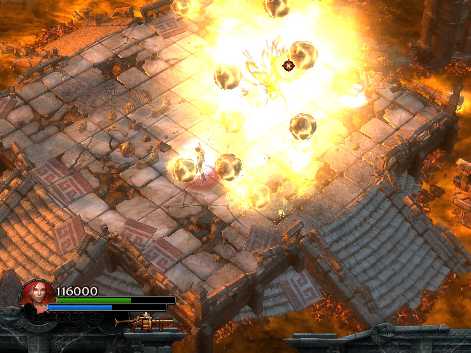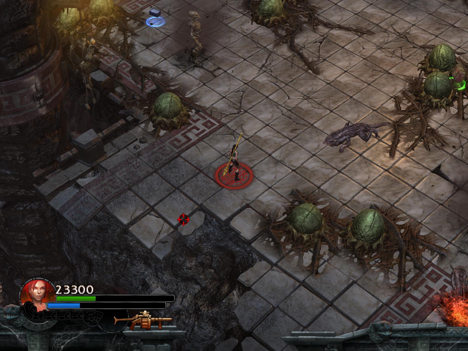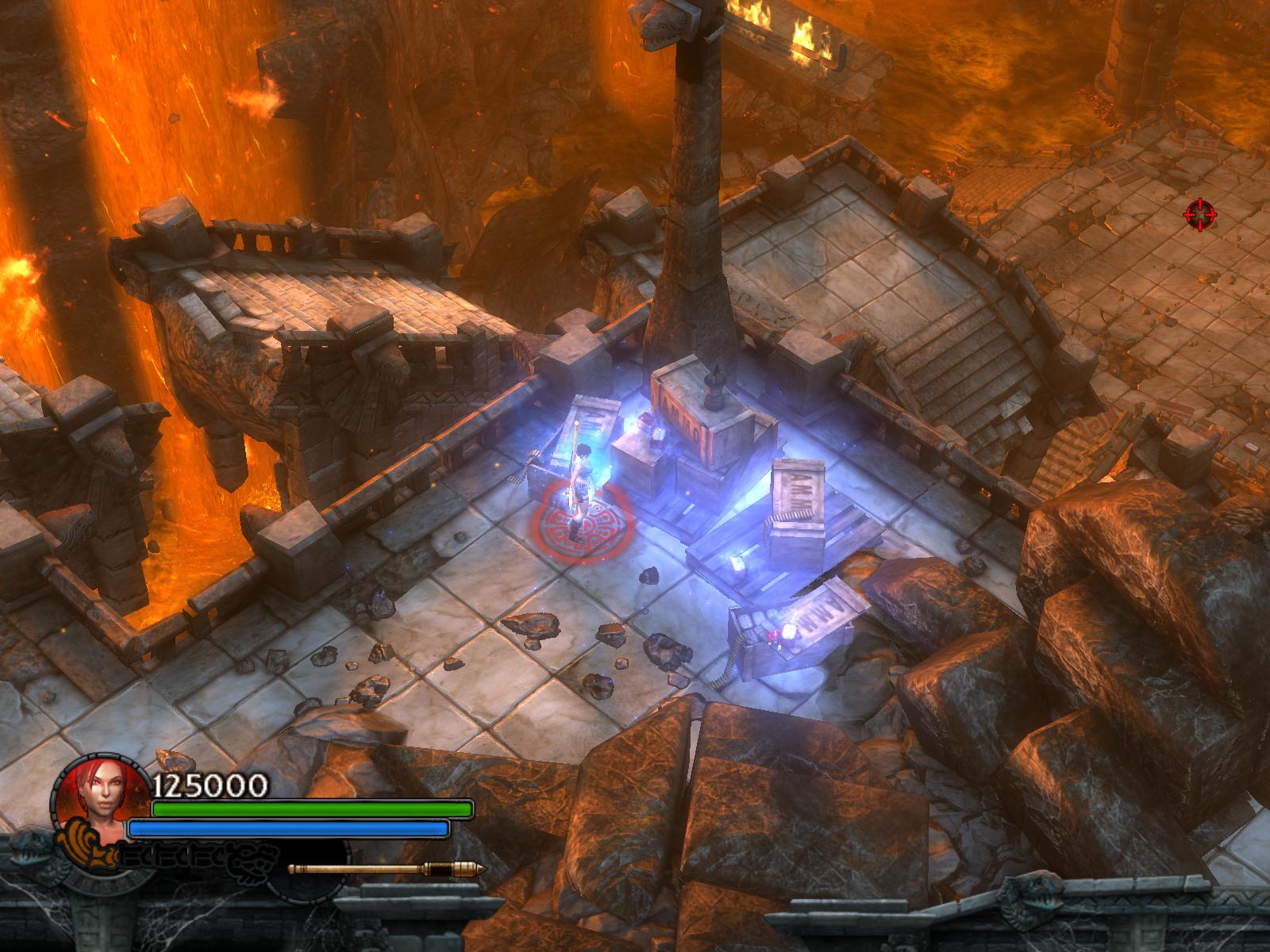 No akkor induljon a menet. Menj, és ugorj le a küzdőtérre. Megjelenik Xolotl, és működésbe hozza a csapdákat. Látod előre a felvillanó körökből, melyik padlólapok lesznek tüskések. Kerüld el azokat, de közben lőnöd is kell az istent, amikor két oldalt megjelenik. Ha elfogyott az energiacsíkja elmegy feltölteni magát, de addig is, pókok özöne ront rád, és a csapdák még ekkor is működnek. Még egyszer le kell csapolnod az energiacsíkját. A végén felmegy az emelvényére a főisten, és rád indítja a hengert. Óvatosan menj ki a tér oldalára, és amikor elment a henger, menj mögé, és ezzel vége is az első küzdelemnek. Van más mód is. Tegyél egy bombát a henger útjába, robbantsd fel amikor odaér, és a felemelkedett henger alatt futva átérsz. Ha nem bírod a gyűrődést, innen itt egy Mentés (Savegame)