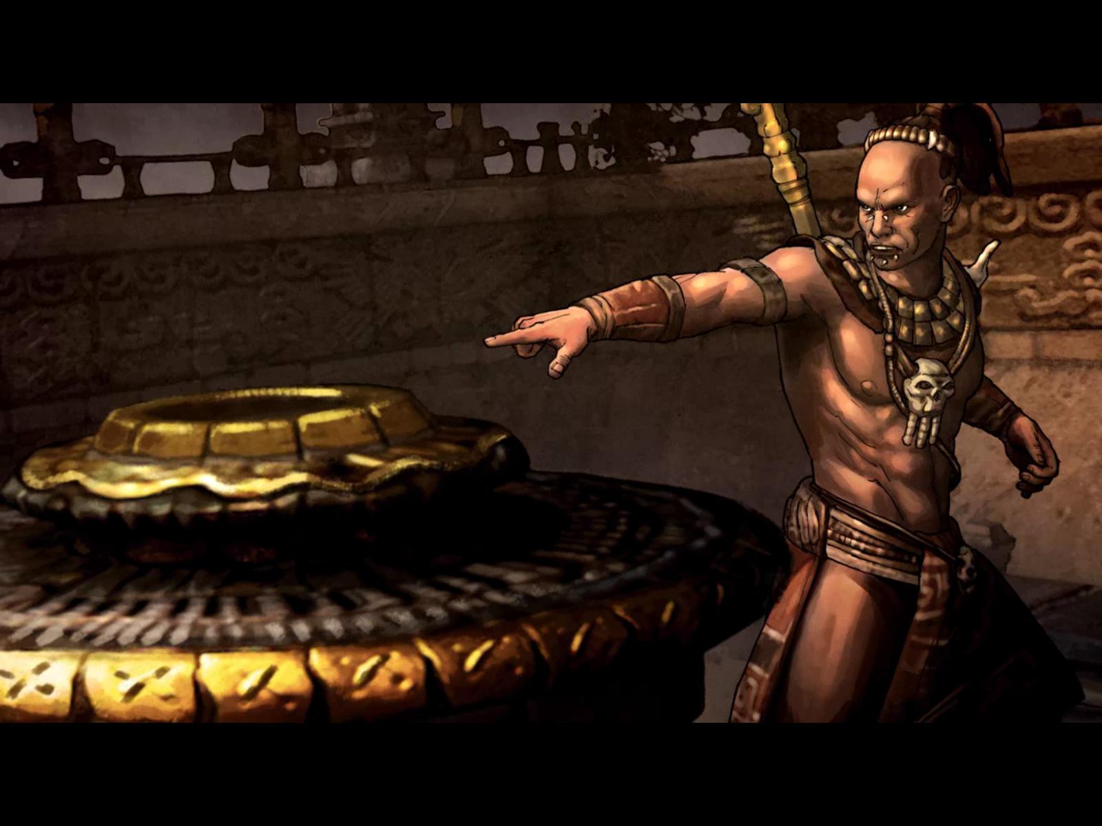 - (Totec) Gyorsan! Vissza kell tennünk a tükröt a helyére, még a hajnal első fénye előtt. Siess! Tedd vissza a tükröt!
