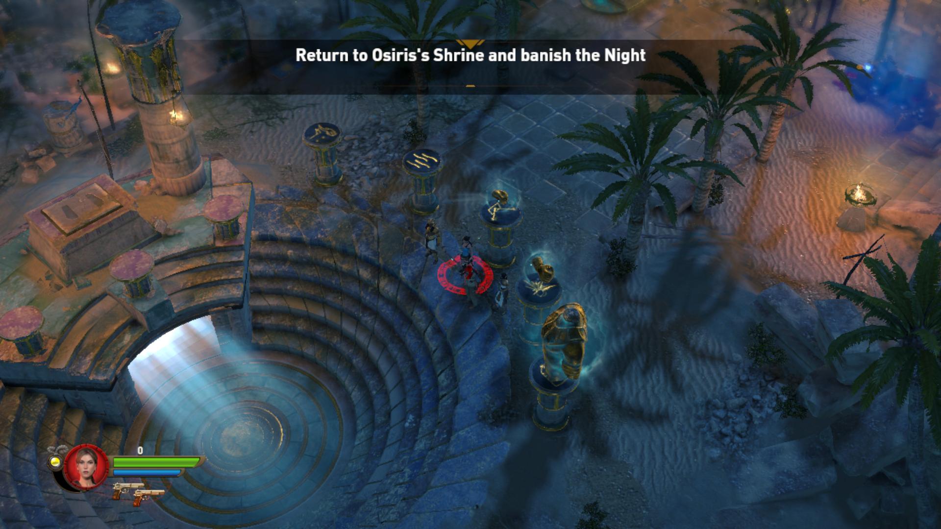 Szedj fel mindent, amit lehet, nyiss ki minden ládát, amit lehet. :) Állj rá a teleportra, és visszatérsz Overworldba. Látod, ott középen megnyílik az út lefelé, egy eddig rejtett kapun át. Menj hát le, és forgasd meg a fogantyúval a gépet úgy, hogy a világos rész kerüljön elő. Szedj fel mindent, és menj vissza fel, a központi helyre. Látod? Nappal lett. No irány a következő pálya. Ha nem tudod merre kell menni, az Osiris szobrok mindig megmutatják.