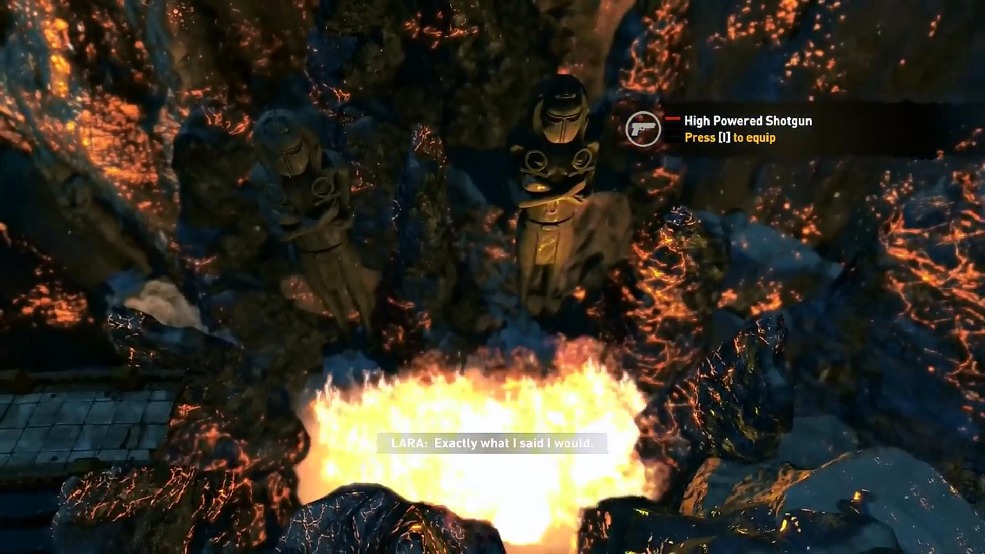 No harmadszor is adj a nagy bogárnak, és a végén holtan esik le, bele a lávába a dög. Ha sikerül 5 perc alatt végezned vele, akkor tiéd a High Powered Shotgun.