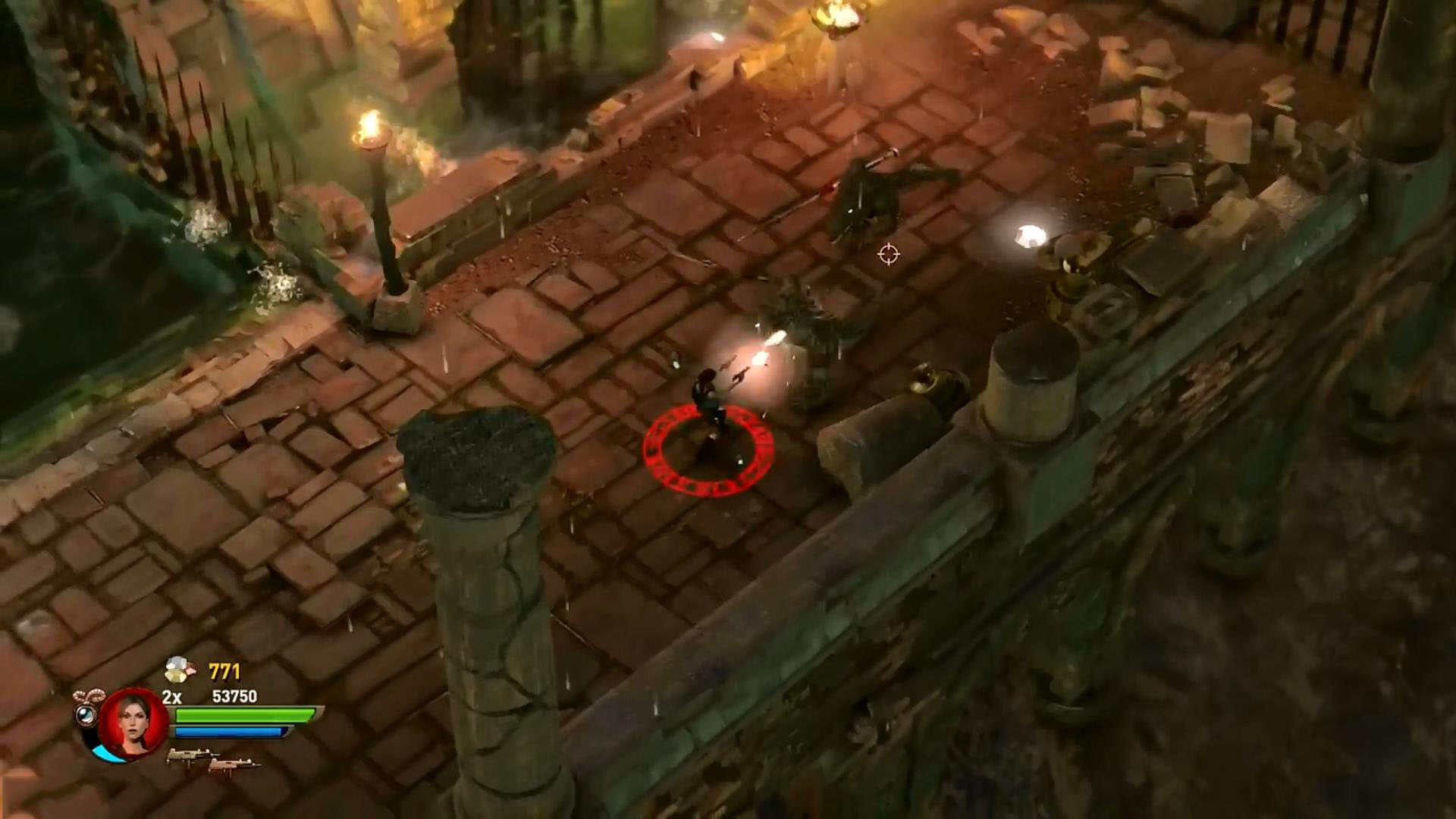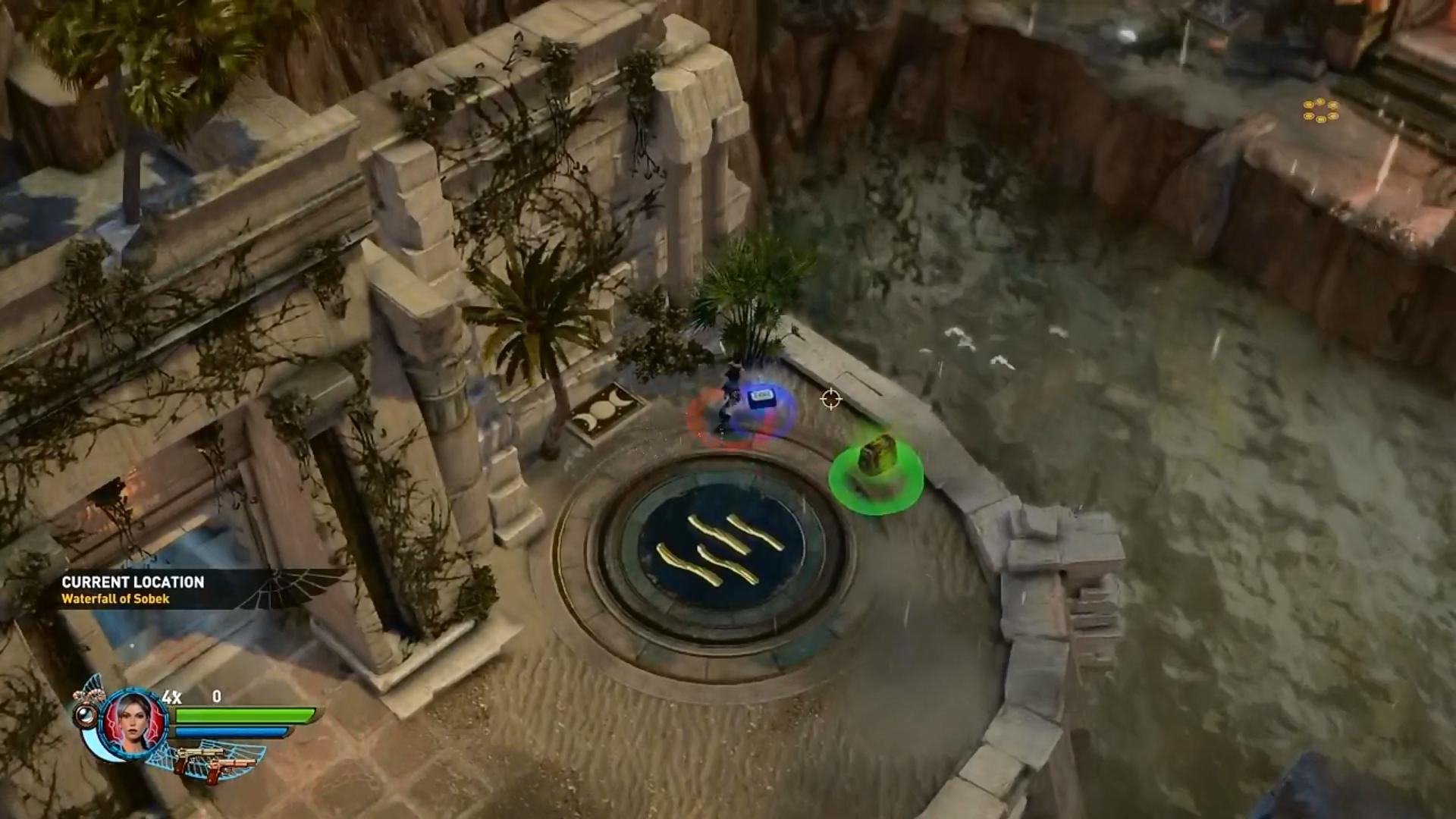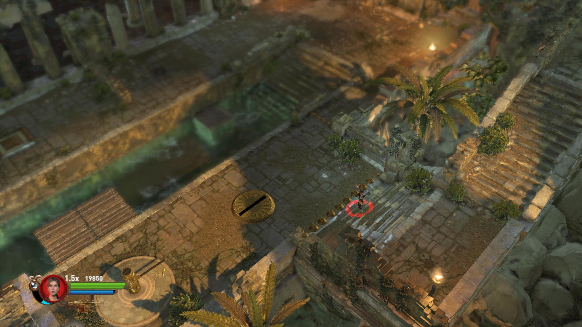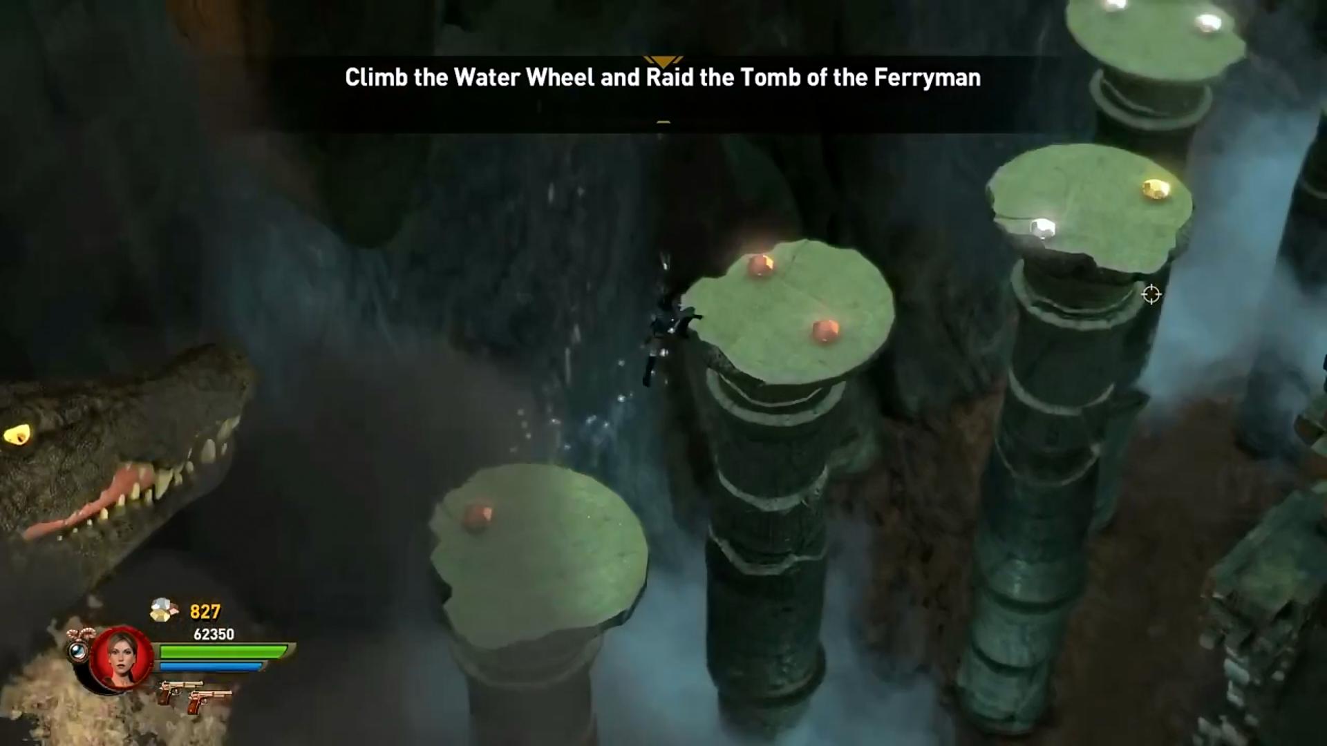 Amikor eléred a túloldalt, Sobek kegyeltjei, két krokiharcos ront rád. Végezz velük. Sorozd meg őket, majd amikor kifeküdtek, egy robbantás, és végük. Gyakorold ezt be, még sokszor kell a pályán. A szokásos módon a felemelt oszlopon át jutsz fel a magasba, és folytathatod az utadat. A vízben robbants egyet a szemszobornál, és kinyílik a rács. Úgy ússz át a túloldalra, hogy kerüld el a szöges labdákat a vízben. Kész legyél a harcra, mert a túloldalon rengetegen rontanak rád, persze krokiharcosok is. A vízből kimászva vedd fel a Machine Pistolyokat, igen jó kis fegyverek.