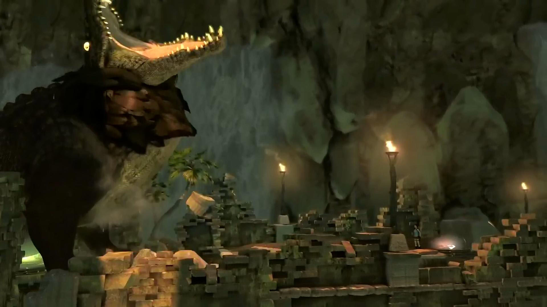 Menj fel a lépcsőkön, és egy újabb kis hídra érsz. Ha átmész teljesen rajta, két krokiharcos elevenedik meg. De most jól figyelj, mert itt oldhatod meg az egyik különleges feladatot, itt kell az egyikkel úgy végezned, hogy a magasban levő deszkapalánkkal kell kinyírnod. Tehát, mielőtt teljesen átmennél, balra a vízben nyírd ki a krokikat. Már csak hogy ne akadályozzanak. Látsz ott egy felemelhető oszlopot. No akkor csald ki a krokiharcosokat, majd fordulj meg, ugrás a vízbe, és emeld fel a magasba magadat az oszloppal. Fent ugorj át a falra, és tégy gyorsan egy bombát a szemszoborhoz. Amikor az egyik harcos feljutott a deszkaplatformra, akkor robbants, és lezuhan. Nem nyiffan ki, majd újra megjelenik, és végezned kell vele a szokásos módon, de ez volt a különleges feladat, hogy megúsztasd kicsit. :) Ha sikerült, megkapod a Max Ammo Upgrade-t.