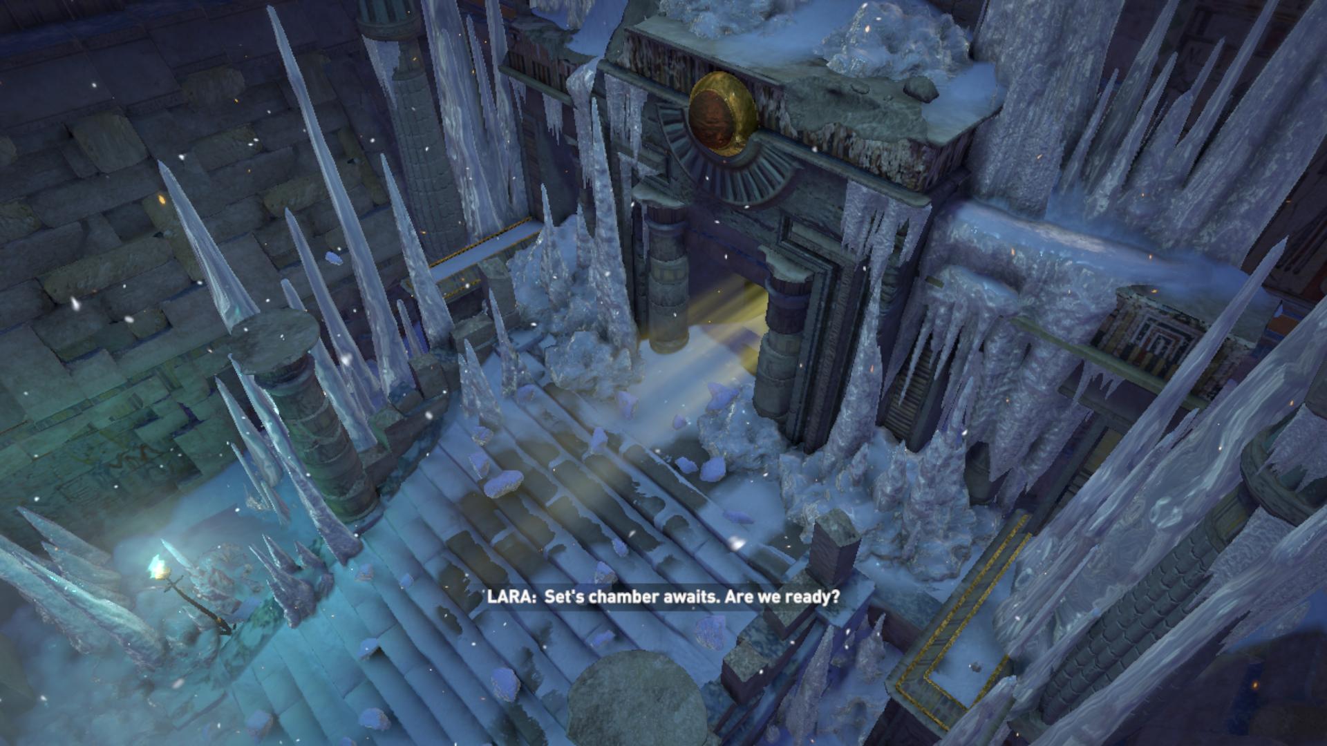 Menj vissza Overworldba. Most jeges, hideg a táj. Menj a központi szentélynél balra, le a lépcsőn. Állítsd a középső részt nappalra, a külsőt pedig száraz, naposra. Menj ki. Látod, Osiris szobrának megvan minden darabja, és össze is áll. Menj arra, amerre mutat. Igen, azon a hídon már kétszer átmentél. Bizony ott robban ki egy újabb kapu, egy újabb, a végső helyszínre vezető. Ott lesz a végső, kemény harc.
