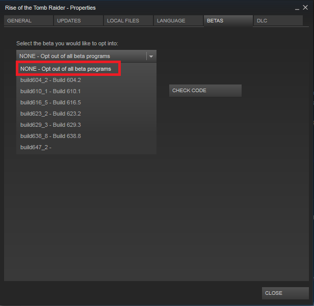 Aki viszont Steamen visszaállt a korábbi 770.1-es buildre, azok szintén a fentiek szerint töröljék le a magyarítást, majd lépjenek ki a Béta programból (Beállítások - Béta fül és a legördülő menüben válasszák ki a "None" opciót). Ezután várd meg, míg a játék automatikusan frissül, és érdemes ilyenkor is a fent leírt validálást lefuttatni. Majd pedig nem maradt más hátra, mint a frissített 1.02-es magyarítást felrakni, és újfent magyarul folytathatjátok Lara kalandját. :)