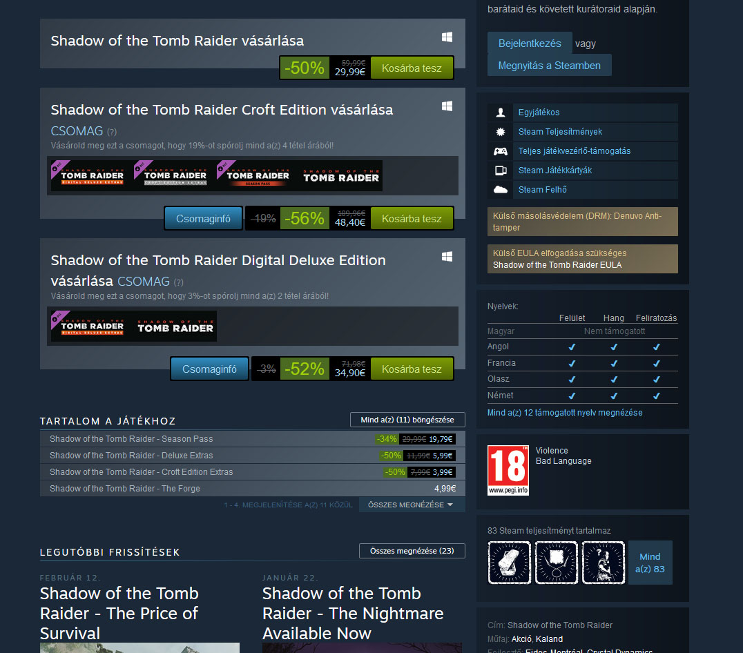 Shadow of the Tomb Raider olcsóbban! Most 50 %-al olcsóbban veheted meg a