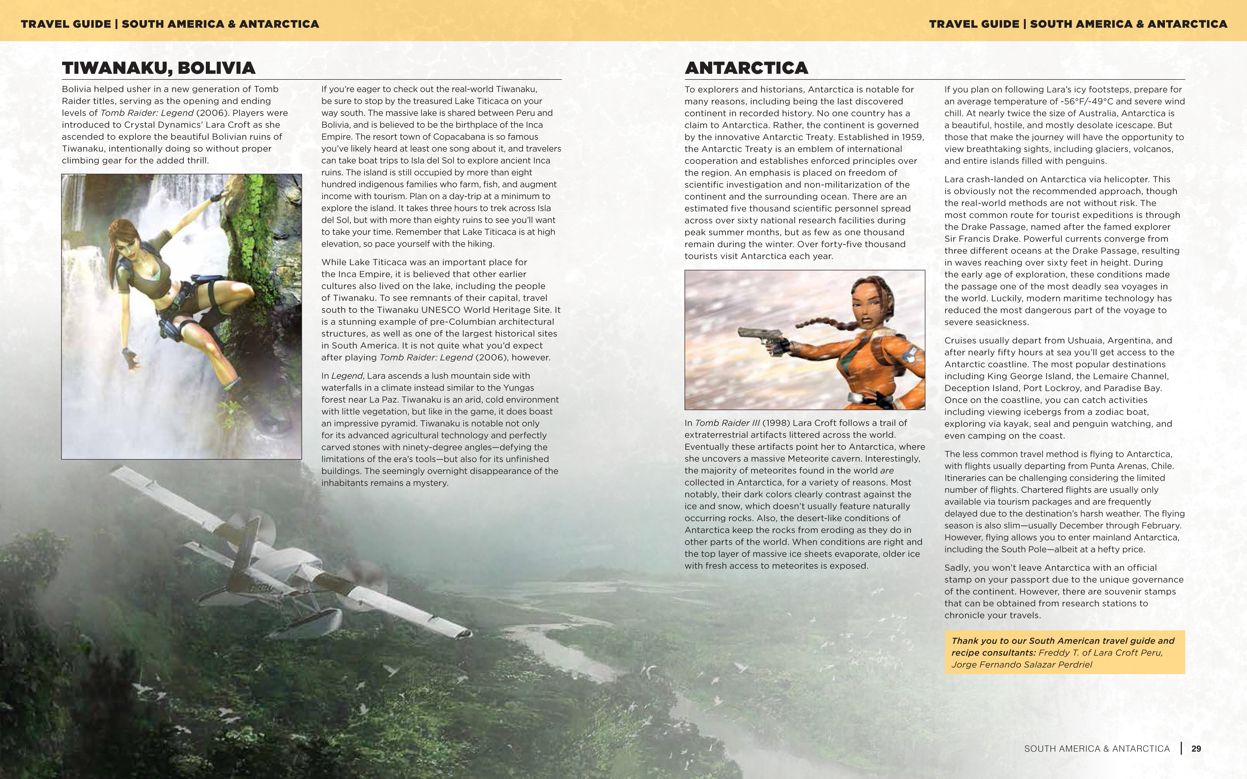 A Crystal Dynamics kiadott egy sor előnézeti oldalt, amelyek a Tomb Raider hivatalos szakácskönyvét és útikönyvét mutatják be. A Lara Croft-témájú kulináris vállalkozás az Insight Editions által készített, a Square Enix és a Crystal Dynamics által hivatalosan licencelt és velük partnerségben létrehozott kiadvány. Kövesse az alábbi előnézeti oldalakat az előnézeti oldalak böngészéséhez.