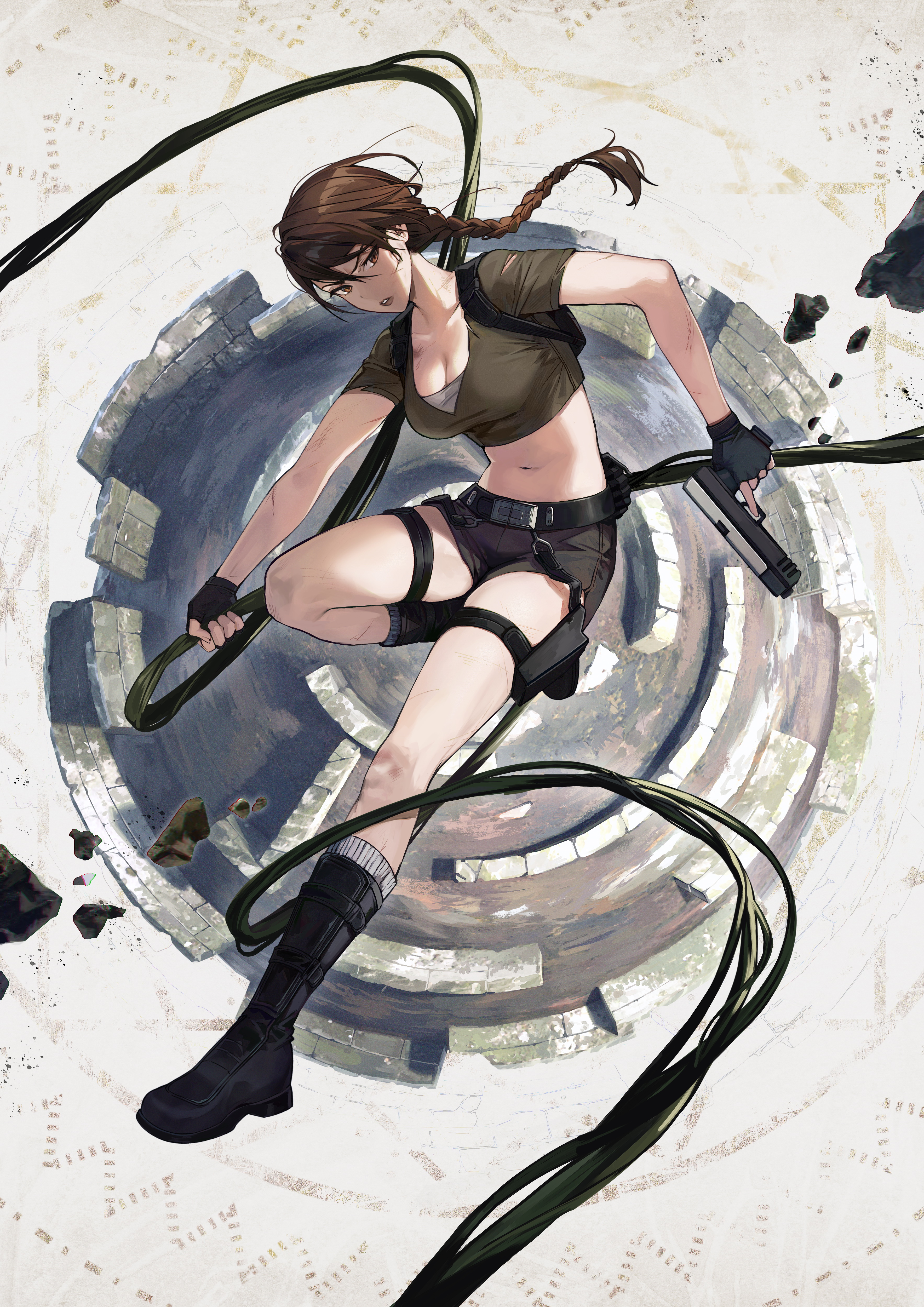 Ehhez a darabhoz Lara-t akartam lerajzolni, amint egy indán leng, miközben a romokat fedezi fel. Úgy gondoltam, jó lenne, ha az indák hozzáadnának az illusztráció energiájához, és a 25. évfordulót is jelképeznék.