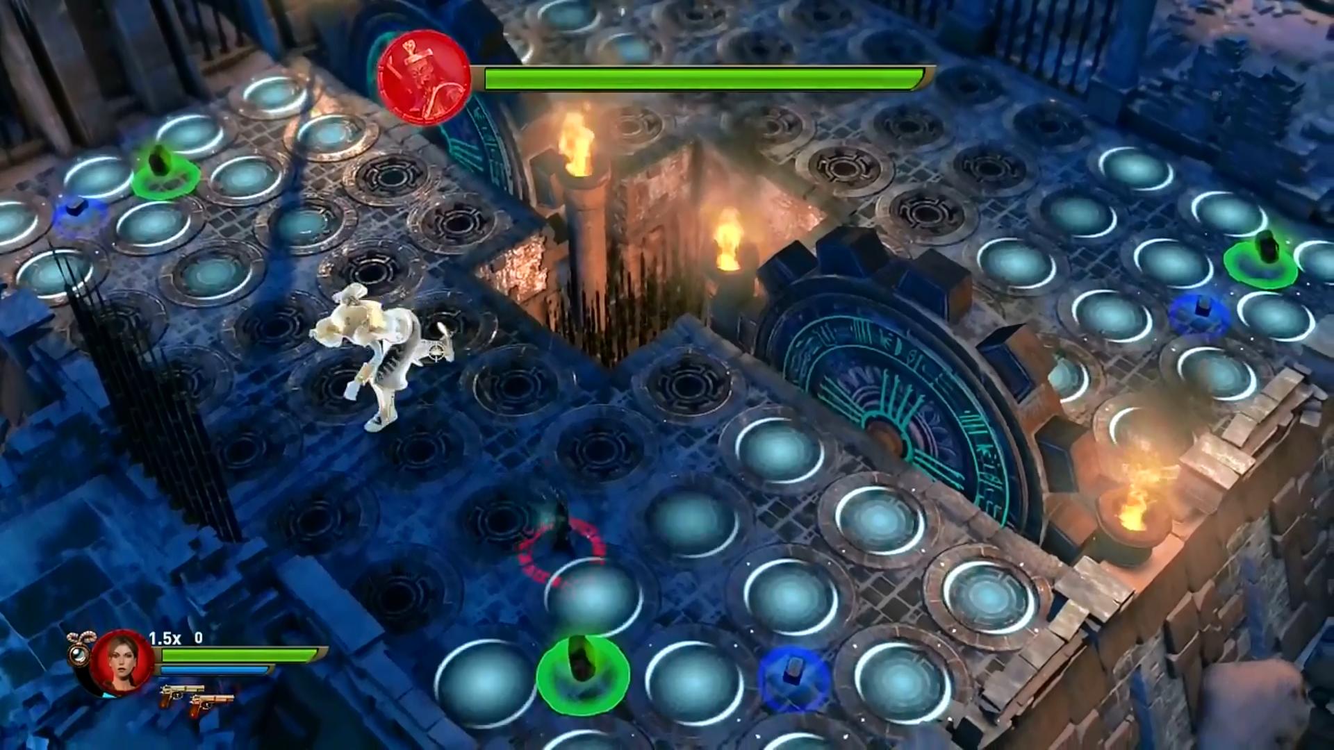 Bemenve, átjutva a Staff-oddal a fogaskerekeken, előtted bezárulnak a rácsok. Hát készítsd elő a keményebb fegyvereket, nagy harc következik. A Staff-oddal tudod a fogaskereket megállítani, vagy elindítani, úgy tudsz átjutni a túloldalra. Ha átjutottál, akkor jelenik meg az óriás Fáraó. Tapsikolva, vagy eltiporva akar kinyiffantani. :) Hát ne közelítsd meg, mozogj állandóan, főleg, mert a fényesedő padlólapok is veszélyesek, hát még a dög segédei. :) Mindjárt rakj egy bombát, ahol átugrik, és robbantsd fel fogadtatásul. Ha akarod, a Staffal változtathatod a színteret a két fogaskeréken átjutva. Persze, hogy ezt is vagy háromszor kell kinyírni. Közben olyan rész is lesz, amikor csak futnod kell, a két térfél között, nehogy a fényes, fagyos padlólapok kinyírjanak.