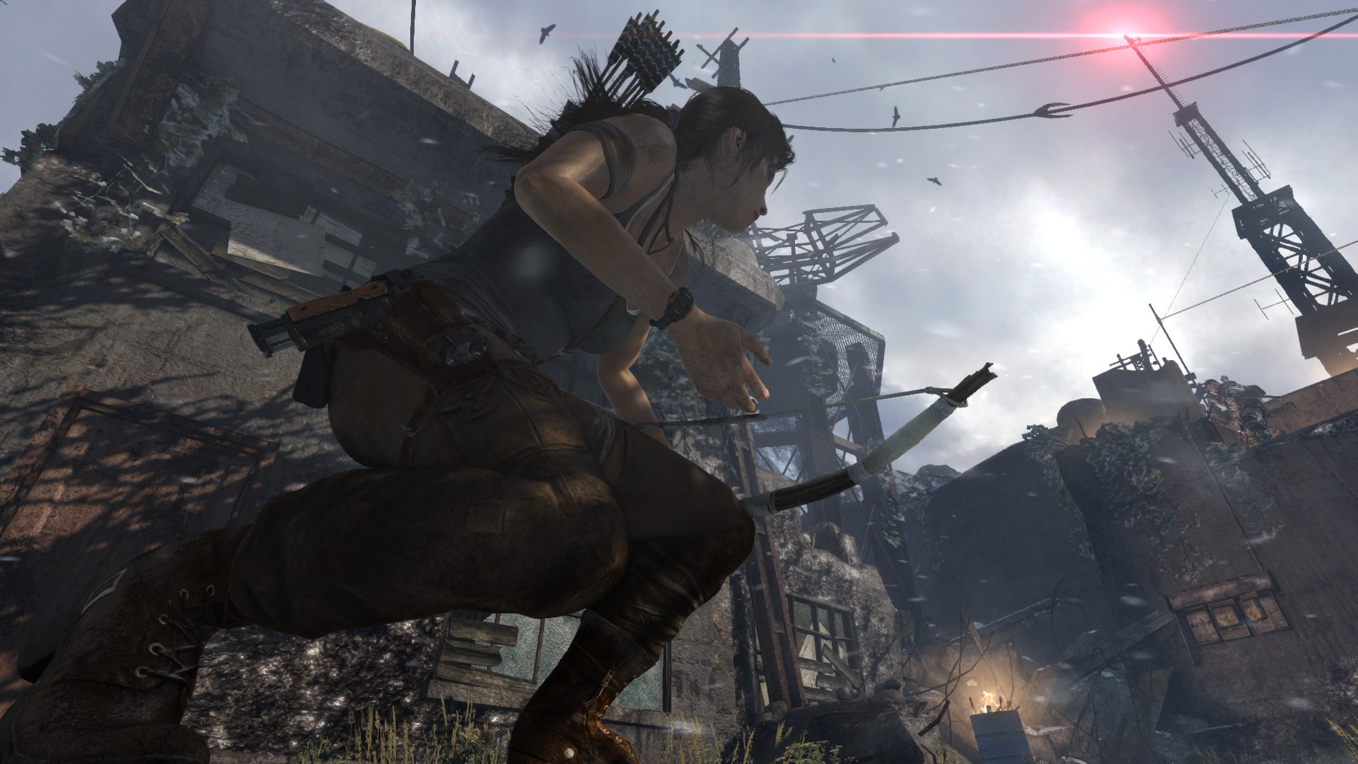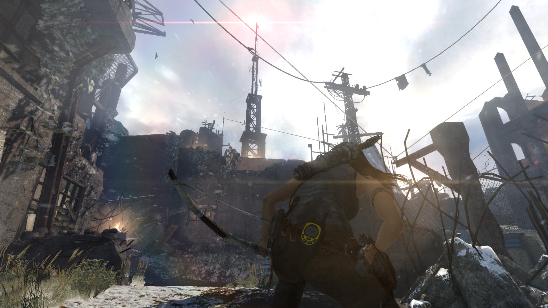 [HUN] És végre elérkeztünk a rádiótoronyhoz. A horizont hihetetlenül gyönyörű itt. A kamera mozgása a bejátszásban szintén tetszett. Az egész szekvencia nagyon jó lett, bár csalódtam, amikor elengedtem az előre gombot és rájöttem, hogy az egész mászás során szinte egyáltalán nem én irányítom Lara mozgását - ennek következtében a veszélyérzetből csupán a lehengerlő látványnak köszönhetően jön át valamennyi, és sajnálatos módon hiányzik a játékmenetből, mivel teljes mértékben elveszítjük az irányítást Lara felett és rájövünk, hogy voltaképpen nem eshet le. Kár az egészért, párszor lezuhantam, miközben megpróbáltam pár képet lőni, és elég félelmetes volt.