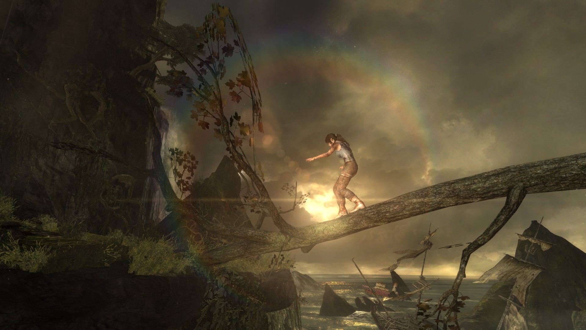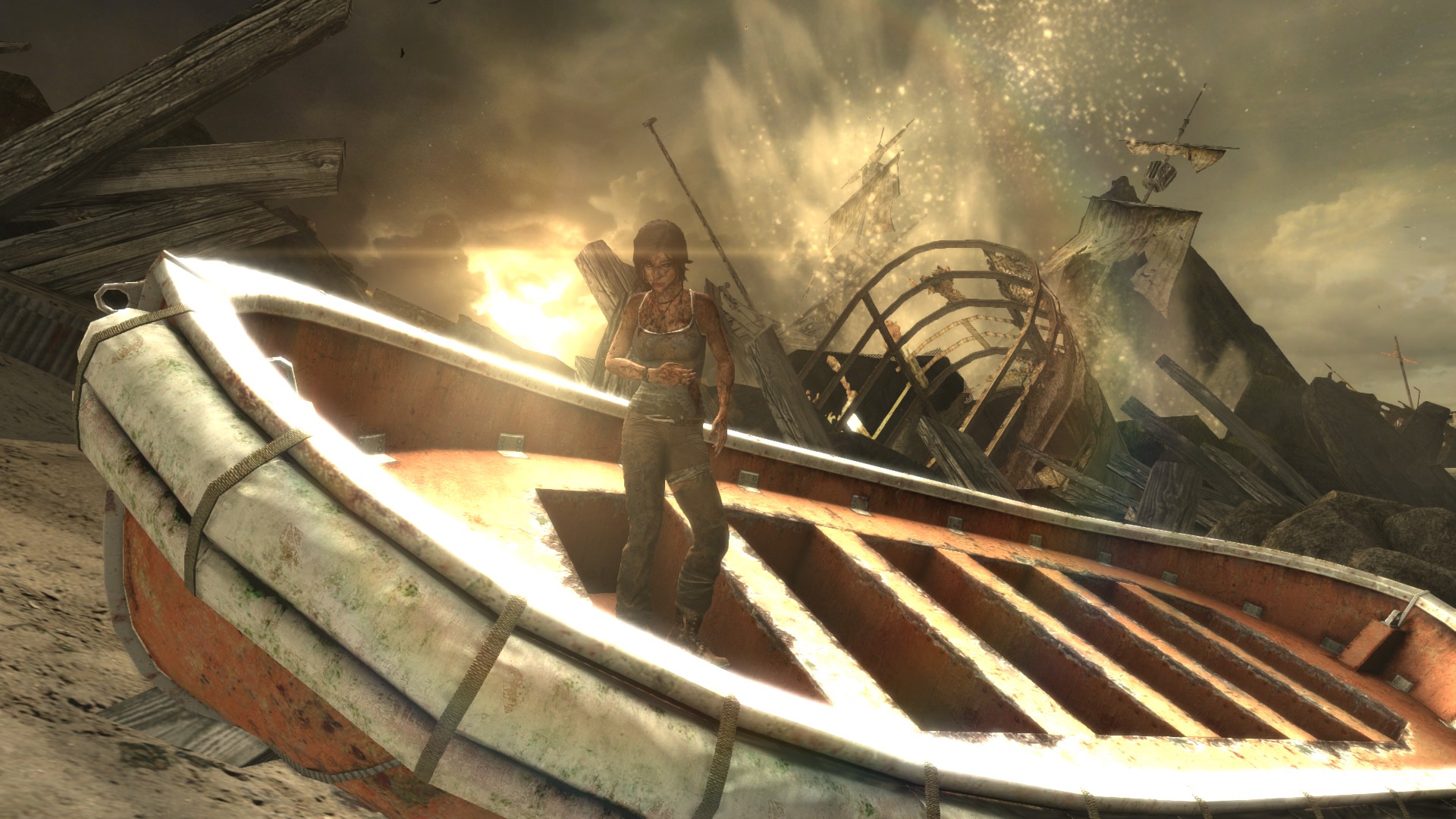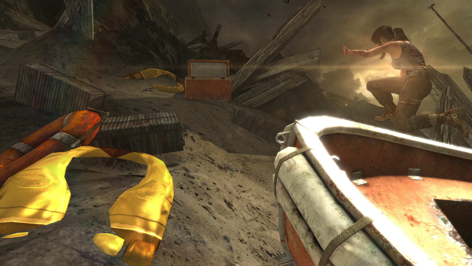 [HUN] Igen tüzetesen átvizslattam a kezdő területet, közelebbről is megnéztem pár hajót, illetve ránéztem a mentőhajóra, amit Lara észrevesz a pálya elején. Csak ezen a területen körülbelül 1-2 órát töltöttem el. A horizont különösen gyönyörű; csak álltam és csodáltam a felhők mögül előtörő napsugarakat és a körülötte cikázó villámokat, a tovarebbenő madárrajokat, a szépen megvilágított hullámokat... Az egész látvány a borongós világításával figyelmeztet bennünket a ránk leselkedő veszélyre.