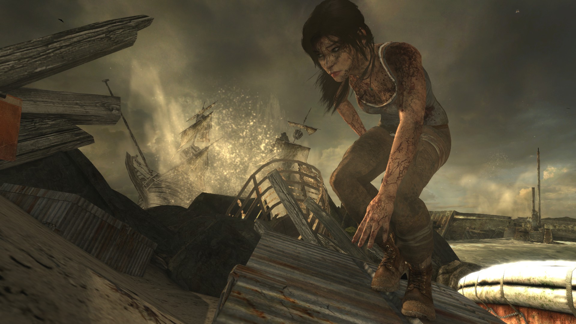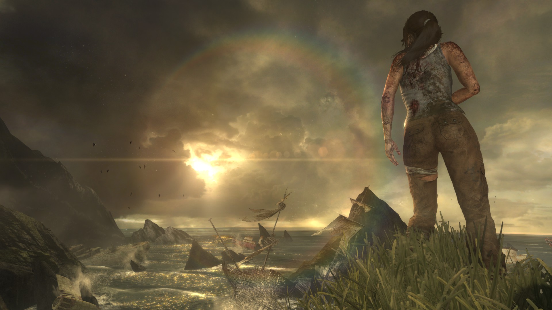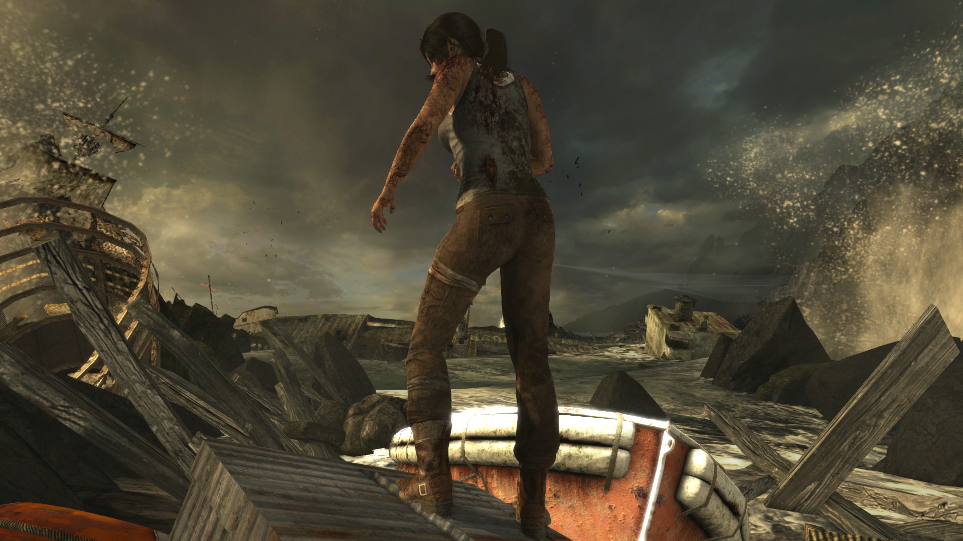[HUN] Igen tüzetesen átvizslattam a kezdő területet, közelebbről is megnéztem pár hajót, illetve ránéztem a mentőhajóra, amit Lara észrevesz a pálya elején. Csak ezen a területen körülbelül 1-2 órát töltöttem el. A horizont különösen gyönyörű; csak álltam és csodáltam a felhők mögül előtörő napsugarakat és a körülötte cikázó villámokat, a tovarebbenő madárrajokat, a szépen megvilágított hullámokat... Az egész látvány a borongós világításával figyelmeztet bennünket a ránk leselkedő veszélyre.