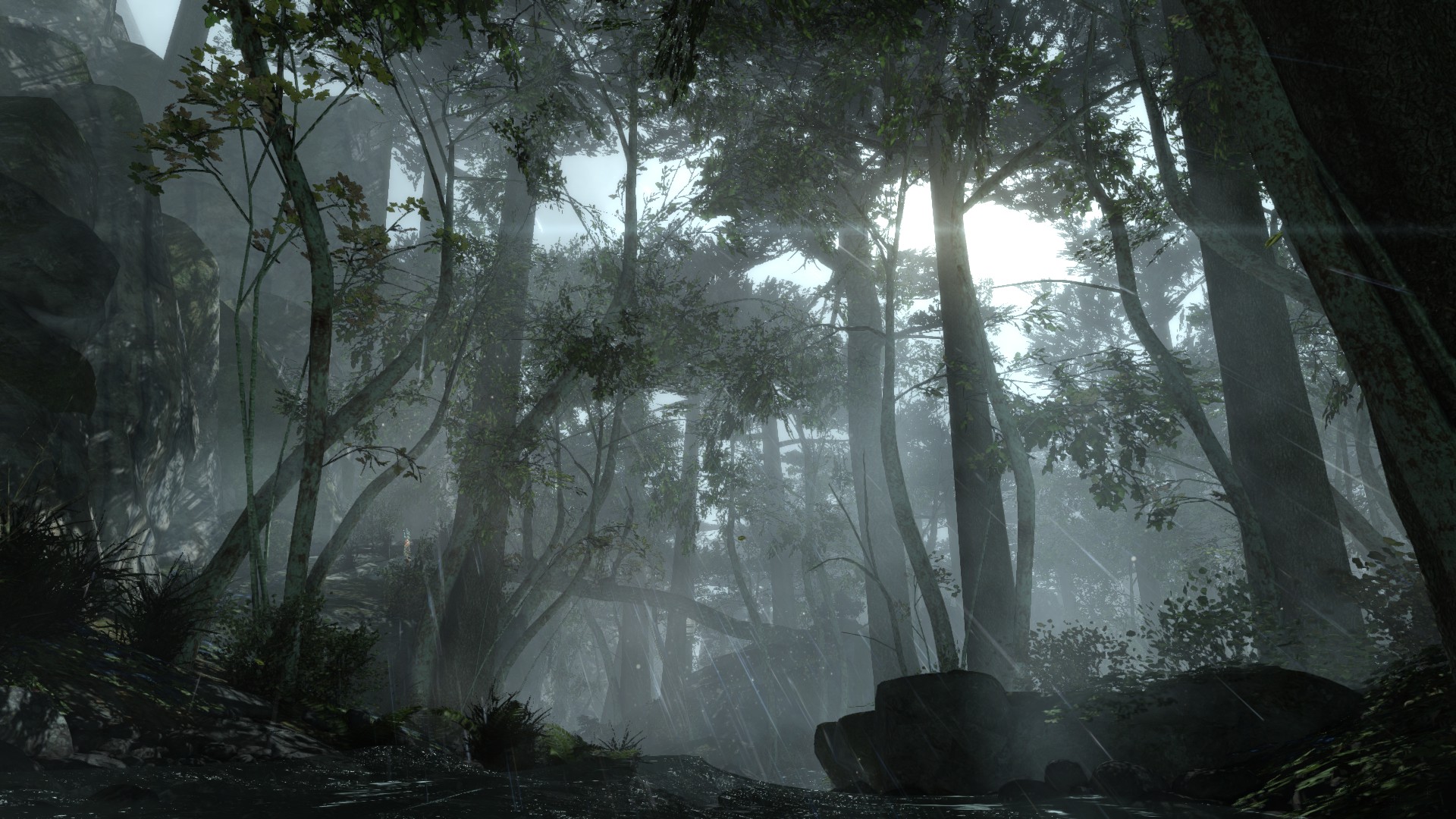 [HUN] Kicsivel később elkezd esni az eső - az egész pályán hol esik, hol nem, jó kis pluszt ad, és kissé megváltoztatja a terület hangulatát. A következő napon egy erdőbe érkezünk. A világítás itt szöges ellentéte a partszakaszhoz képest; rendkívül világos, de ennek ellenére nem túl barátságos. Számomra elég másviláginak tűnik, aminek valószínűleg a szép nappali fény és a szigetből áradó veszély érzete keltette ellentét eredménye.