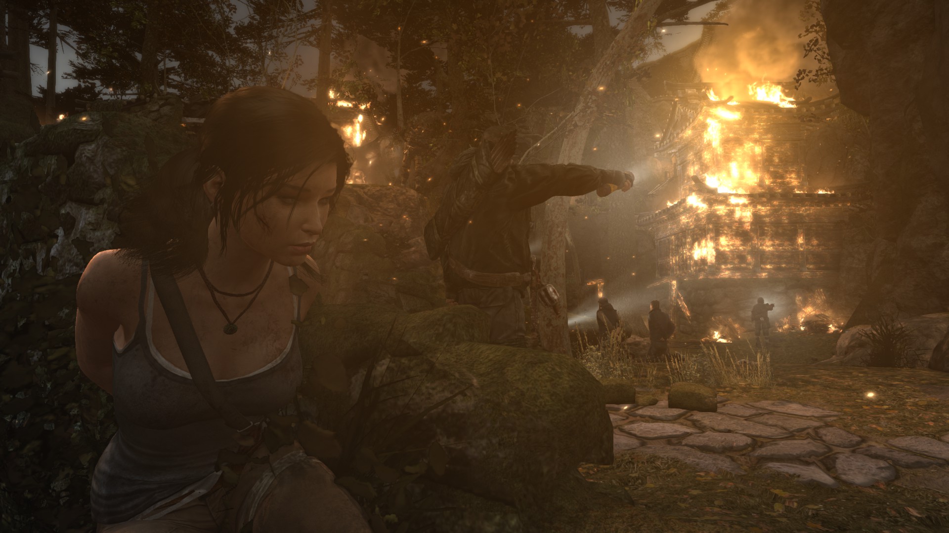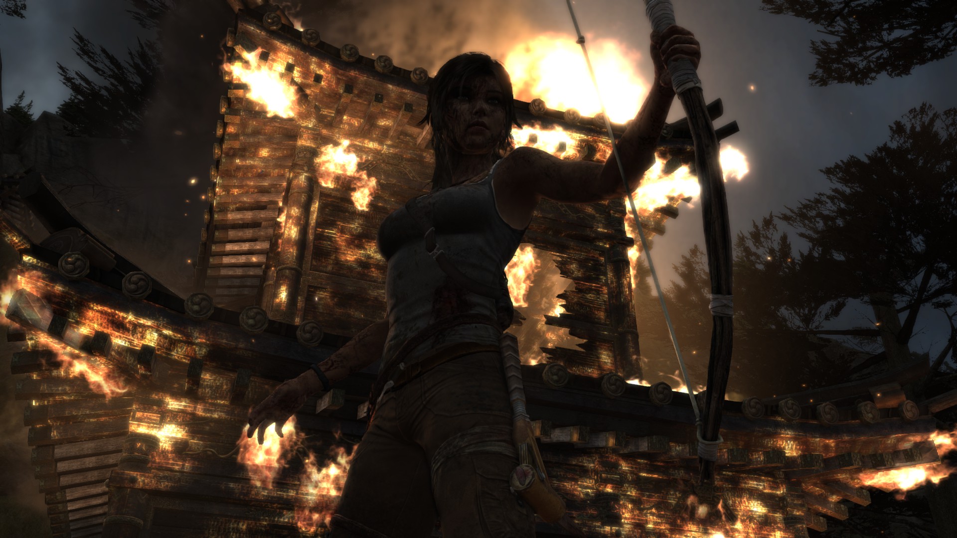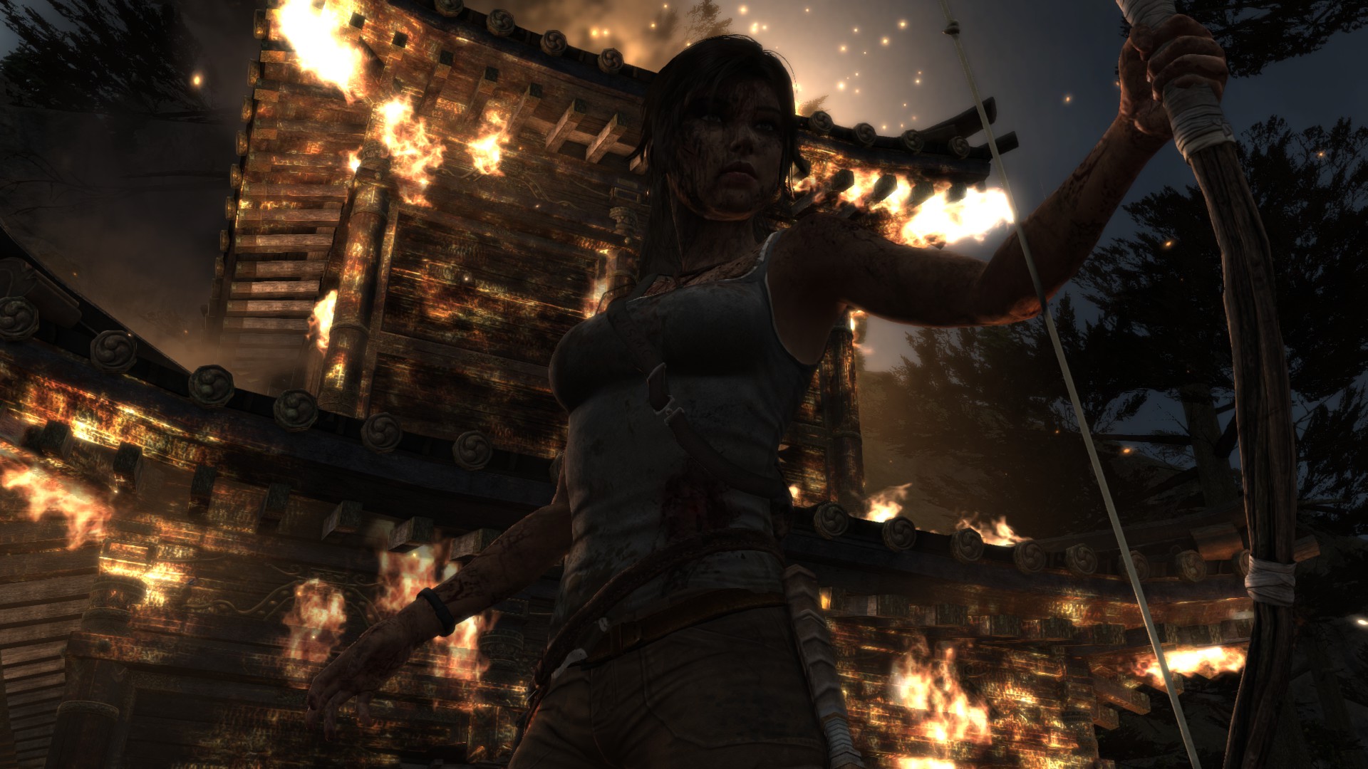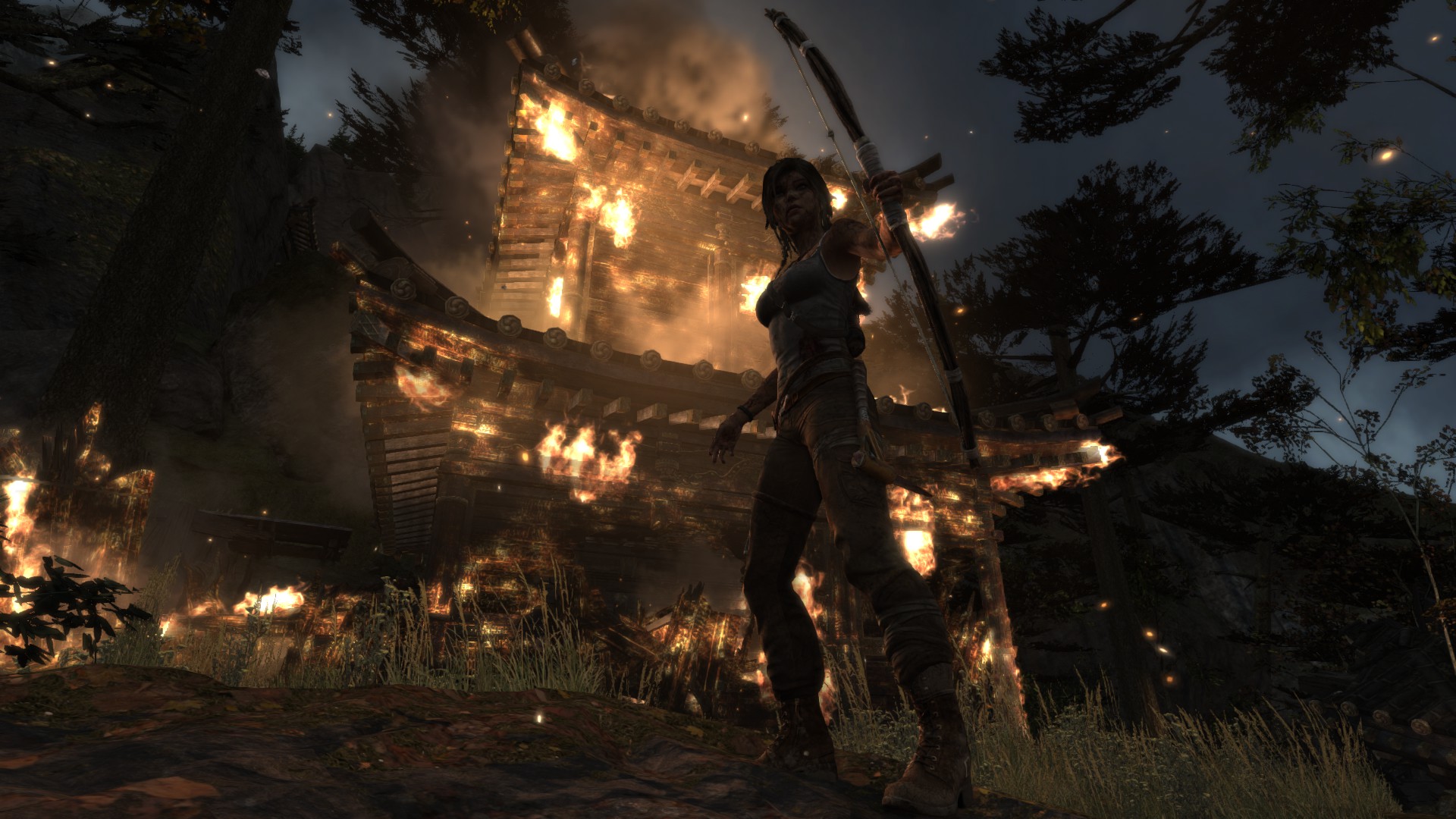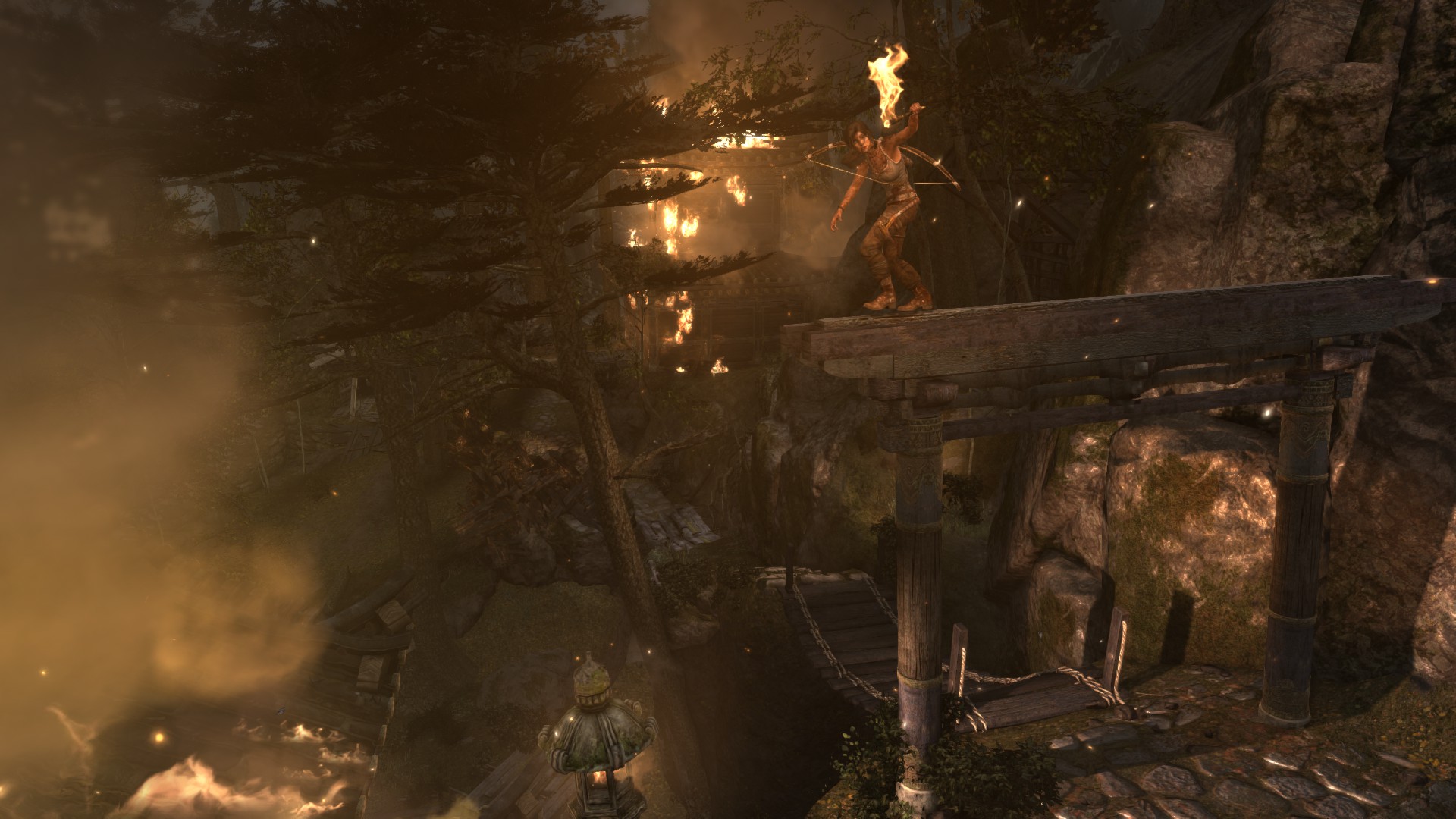 [HUN] A pusztítás is lehet szép, az égő pagodák, bármilyen szomorú látni, ahogy tökreteszik őket, igazán fenséges látványt nyújtanak. Úgyhogy kaptam is az alkalmon, és kerestem egy megfelelő pózt Larának az egyik pagoda előtt. Már készen áll a harcra.