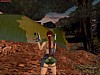 Ha a fordulós ugrást választjuk a lejtõs részen lógva, araszoljunk jobbra, míg fel nem tudunk kapaszkodni, innen ugorjunk az eggyel fentebbi, mellettünk levõ sziklára, majd a fára. Innen már kényelmesen kinyírhatjuk az õslényt. Feltûnik egy másik is az ágak között, végezzünk ezzel is. Láthatunk egy kötélen lógó tetemet, lõjünk bele, erre leszakad a kötélrõl, és a vízbe esvén eltereli a piranhák figyelmét rólunk. De mielõtt leugranánk a vízbe, ugorjunk fel az egyik faágra kicsit ferdén a második titkos helyért.