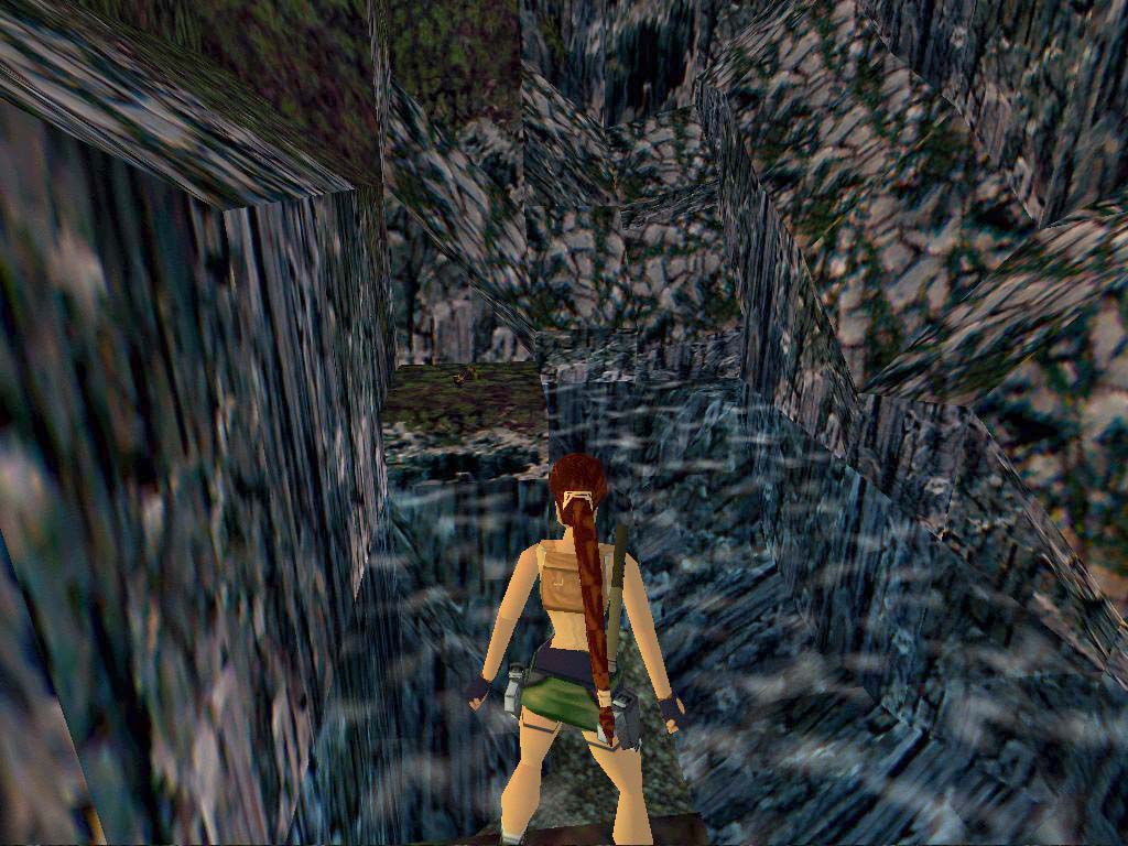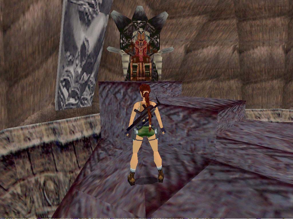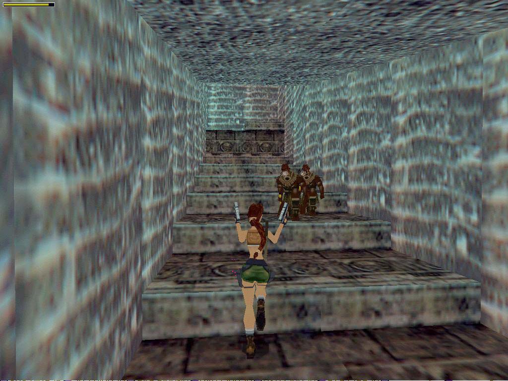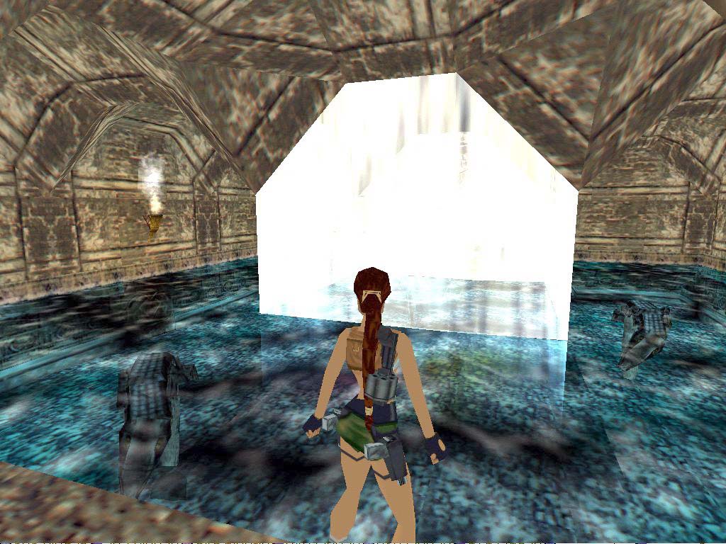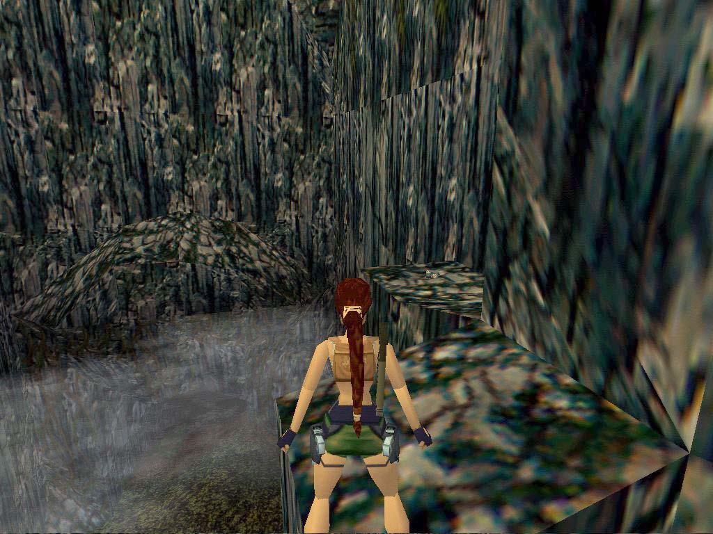 Innen mielõtt felmászunk a létrára, lõjük ki a fent portyázó bennszülöttet, aki valószínûleg sajnos meg is lõ minket. Vigyázva a tüskékkel másszunk fel. Kristállyal gyógyíthatjuk magunkat és a miénk egy kis és egy nagy elsõsegély csomag. A perem szélérõl mostmár ráugorhatunk a hõn áhított lejtõvel szembeni kõre. Ne pont a szélérõl ugorjunk - lépjünk hátra kettõt - és ne nekifutásból, mert különben Lara beveri a fejét, és a vízbe zuhan. Haladjunk elõre, egy hídhoz érünk. Innen többfelé mehetünk. Aki továbbra is titkos helyekre vadászik, nézzen körül a hídon (körülnézhet a teremben is, de ne essen a vízbe, és ne csússzon le a lejtõn), onnan át lehet ugrani egy sziklára, majd párat ugrálva miénk a második titkos hely. Itt két lehetõségünk van, mindkettõ jó. Vagy bemegyünk a terembe (1-es bekezdés), vagy aláereszkedünk a mélybe óvatosan, teljesen mindegy. Ha aláereszkedünk, menjünk a mocsár felé, a közepén levõ tömbre ugorva keljünk át rajta, majd menjünk a szürke köves vízesés felé. Essünk a vízesésbe, hagyjuk sodorni magunkat, és innen olvassuk az 1/A bekezdést lentebb.