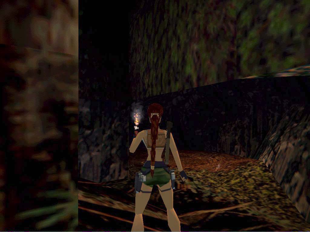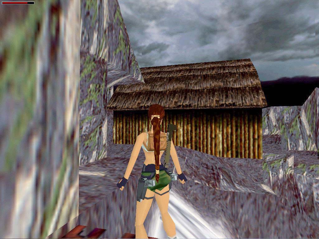 Egy szép folyó mellett találjuk magunkat. Két mérget köpõ óriásgyík ront ránk, öljük meg õket. A túlpartra nem tudunk egyszerûen átjutni, viszont vizsgáljuk meg a mi oldalunkon levõ épület alját, és kapaszkodjunk fel. Itt van a földön az egyik sarokban egy zárt ajtó. Szedjük fel a muníciót, majd menjünk a folyó felé, van egy szikla balra, ahová le tudunk ereszkedni, majd még lejjebb, és ki tudunk ugrani a folyó közepén álló magányos sziklára. (Nem kell nekifutni, és ne a szélérõl ugorjunk, mert Lara túlugrik, és a vízbe esni itt azonnali halált jelent.) Onnan lendüljünk neki és ugrás át a szemközti lejtõre, megkapaszkodás, és araszolhatunk jobbra, míg Lara fel nem tudja húzni magát biztonságosan. Innen a köveken ugráljunk tovább óvatosan jobbra, míg egy kapcsolóhoz nem érünk, aktiváljuk azt. Menjünk visszafelé, lógassuk le magunkat ahol kell, és kapaszkodva araszoljunk vissza balra, ahonnan jöttünk, de ne ugorjunk vissza a középsõ sziklára, hanem araszoljunk csak tovább balra, míg ki nem tudunk kapaszkodni. Itt egy bambuszajtó van a lábunk alatt, lógassuk le Larát róla a víz fölé, engedjük el a kapaszkodás gombot egy pillanatra, majd újra nyomjuk le, Lara egy szinttel lejjebb esik. Kapaszkodjunk fel, vegyük fel a kristályt, majd aktiváljuk a gombot, lenyílik a bambuszajtó, így vissza tudunk mászni.