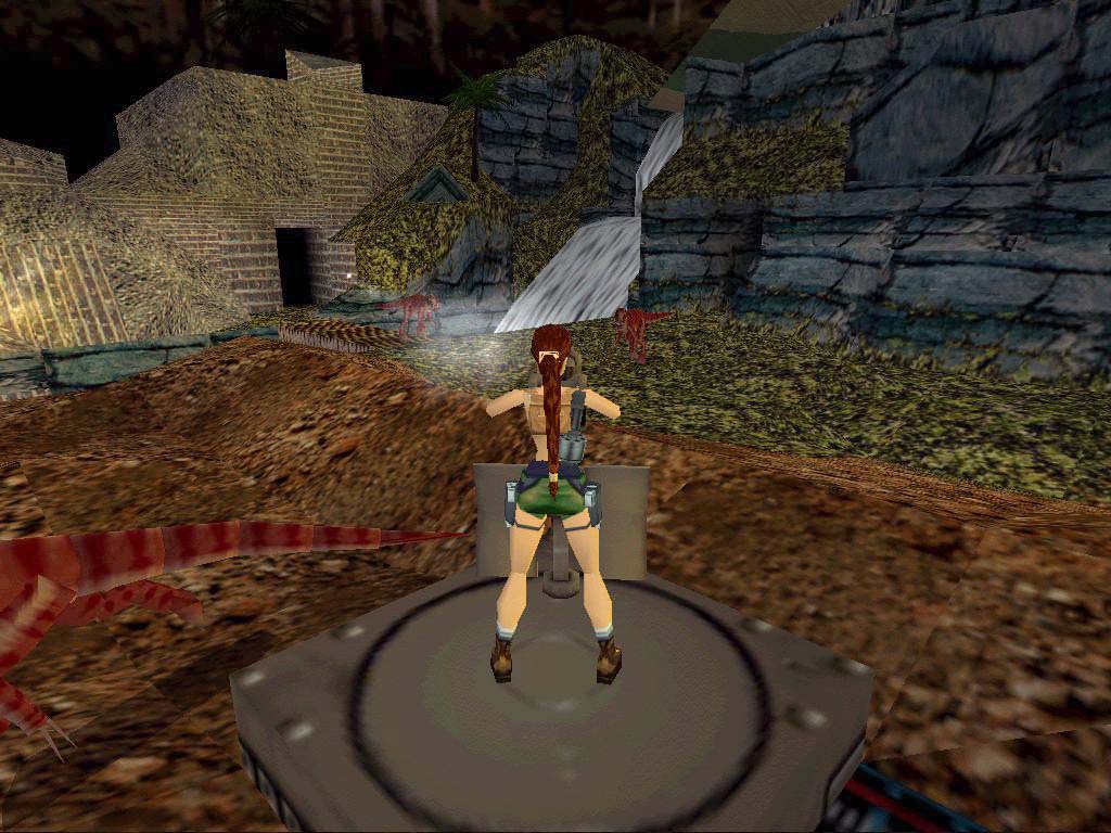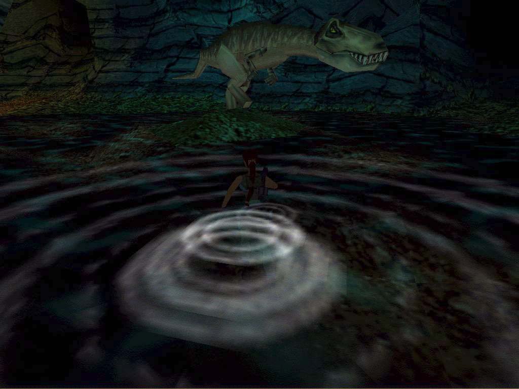 A gép másik oldalán a dombról nézzük végig két katona és egy dínó meccsét, a végkifejlet változó, vagy életben marad mindkét katona, vagy az egyik belehal a támadásba. Ha gondoljuk, segítsünk nekik kilõni a dínót, de a katonákat ne bántsuk, még hasznunkra lehetnek. Ha egyszer akár véletlenül is meglõjük az egyiküket, onnantól nem leszünk túl közkedveltek a társaik szemében sem, mint a majmoknál nemrég. Ha valamelyik katona meghal, hullarablóskodjunk, mert töltényeket hagynak maguk után. Itt több járat van a sziklában, de csak egy vezet valahová, viszont kell a fáklya, hogy ezt kiszúrjuk. Bemenvén egy kis tisztásra érünk egy folyóval, ahol hamar vonuljunk fedezékbe - másszunk fel a sziklákra, mert így nem ér el a raptor, és a katonák kinyírják õt helyettünk. Másszunk fel a fali liánokon, de mentsünk elõtte feltétlenül. Itt választhatunk, felérve vagy hátraugrás közben irányt változtatunk, és így érve a lejtõs részre a végén megkapaszkodunk, vagy egyszerûen csak ugrunk, a lejtõs részrõl meg arccal a fa felé ugrunk lecsúszás helyett. Ez utóbbi azért kellemetlen, mert bár az ugrás így egyszerûbb, de egy olyan ágon találjuk magunkat, melyet egy raptor õriz, és esetleg dulakodás közben lelök minket.