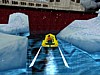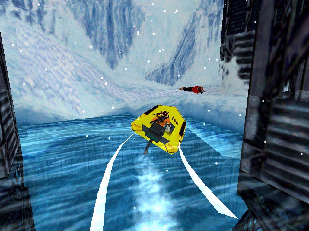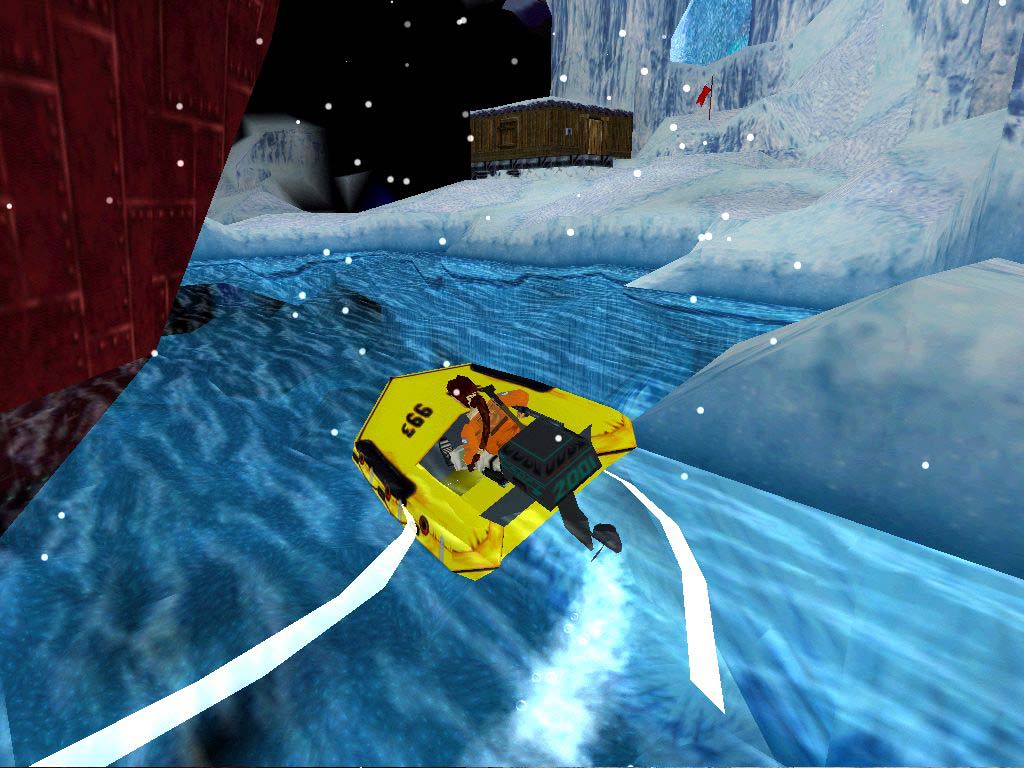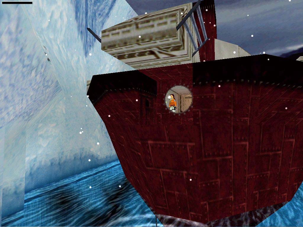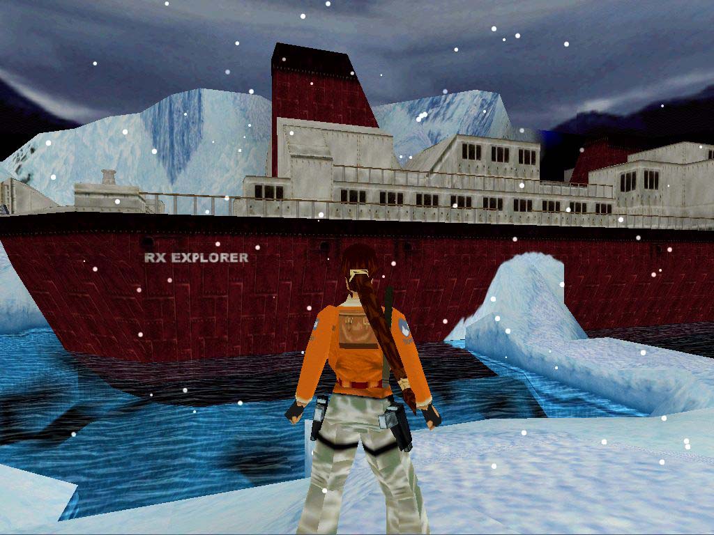 A feladatunk feljutni a hajóra. A kunyhót egyelõre hagyjuk, irány felvenni a jégpáncél mögötti cuccokat. Ugorjunk át a víz felett, melybe esni nem ajánlatos, csak rövid ideig lubickoljunk benne, a fagyásveszély miatt. Menjünk jobbra felfelé óvatosan, a séta ajánlott a csúszós részek miatt. Itt be tudunk menni a barlangba és miénk az elsõsegély csomag meg a töltény. Menjünk vissza tovább elõre a hajó orrához, ott kezdjünk el felfelé mászni, majd felül függeszkedni, majd ugrás át a hajóra. Ellenségeink pufidzsekibe öltözött katonák lesznek. Essük le, a gép mögött van egy jól rejtõzködõ kar, húzzuk meg, ami a gép elõtt nyit ki egy ajtót a padlón. Menjünk, nyomjuk meg a gombot majd azt is, amely a csónakot pottyantja a vízbe, majd másszunk egy szinttel feljebb, ott fussunk a korlát mentén a hajó bal oldalán, egy helyen, a végén nincs korlát és ott egy barlang, az elsõ titkos hellyel.