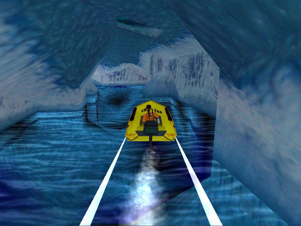 Menjünk vissza a hajó hátuljához, hátraszaltózzunk a ferde állvány felé, amelyrõl leeresztettük a csónakot, hogy a túloldalán lecsúszva megkapaszkodjunk, majd felhúzódzkodás után hátraszaltó. Ereszkedjünk le és ugorjunk a csónakba. Menjünk a kunyhó felé a hosszabbik úton az orr felé, majd miután elhagytuk a kunyhót, baloldalon lesz egy barlang. Pont mellette parkoljunk, ugorjunk be, vigyázva jussunk fel, a kúszórés kétfelé ágazik. Jobbra van a második titkos hely, balra meg a kivezetõ út, ahol a vízbe esünk, ússzunk vissza gyorsan a csónakhoz. A víz alatt terep nincs éppen a segítségünkre.