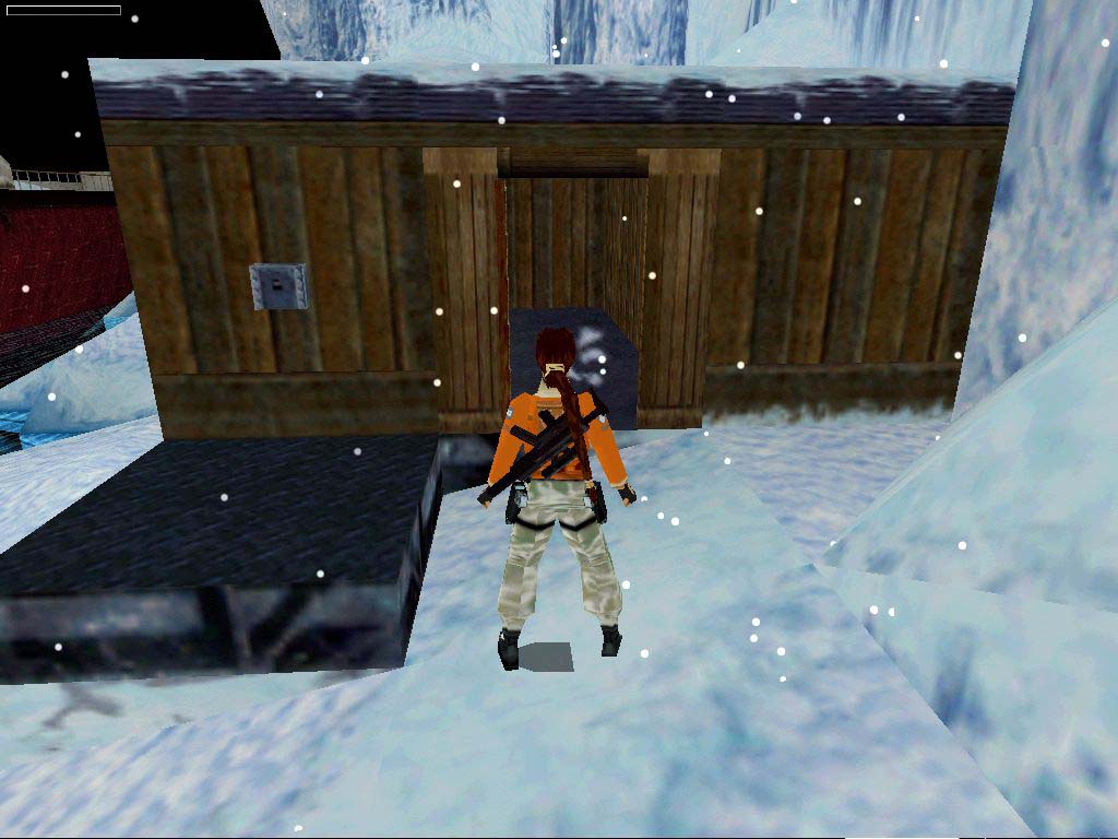 A falban van egy kúszórés, de nem érjük fel, viszont tõle jobbra a fal mentén van egy kis dombocska, na annak a jobb szélérõl felugorva megkapaszkodhatunk a falban és odaaraszolhatunk a réshez, melyben egy kapcsolót megnyomva egy ajtó nyílik ki, ez lesz a második titkos hely ajtaja valahol távolabb. A kupacokon türelmesen, és pontosan ugrálva eljutunk a létrához, haladjunk felfelé legyûrve az akadályokat. Menjünk vissza a kocsihoz, mentsünk mindenképpen. :-) Üssük meg a váltót, visszajutunk a fõterembe. Feszítsük fel az ajtót ezen a szinten, így a miénk lesz a Lead Acid, akkumulátor. Menjünk legfelülre a házba, az ablakból láthatunk egy rést a falban. Másszunk fel a ház tetejére, ahol lehet, hátul lógassuk le Larát, majd araszoljunk a lyukkal szembe, ott van egy létra. Másszunk le rajta, a legalsó fokáról egy hátraszaltó, közben fordulás majd megkapaszkodás. Menjünk be, és az elsõ titkos hely rögtön jobbra, a második titkos hely szemben, az az ajtó, amit kinyitottunk lent.