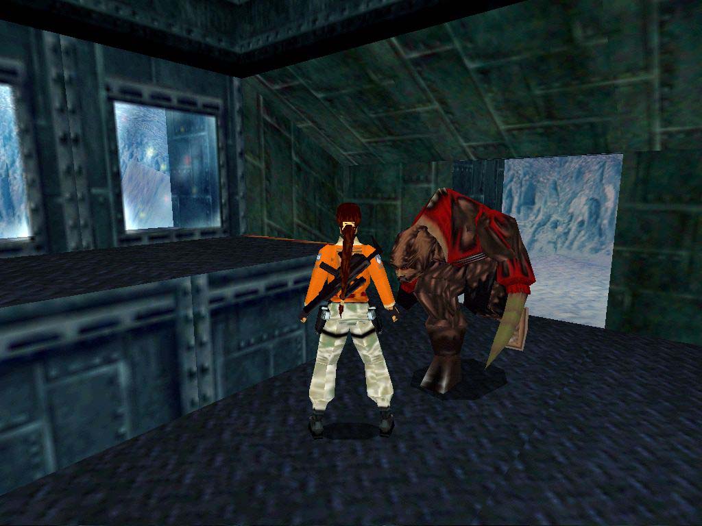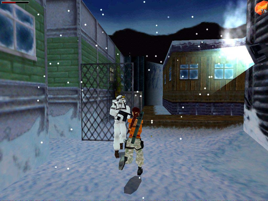 Menjünk tovább, szálljunk ki a következõ kunyhónál, ugyanis a gát le van eresztve, nem tudunk továbbmenni, ezen kell most változtatni. Ebbe a kunyhóba kellene bejutni, de egyelõre zárva, úgyhogy menjünk tovább. A túloldalán felül függeszkedéssel jussunk el a fémváz túloldalára, onnan pedig a jégfolyosón keresztül a másik épülethez. Itt másszunk fel az állványra, fent kapcsolót húzhatunk meg, ami nem messze egy tetõajtót nyit meg, de a zárt ajtó még akadályoz az odajutásban, tehát ide majd még vissza kell jönni. Még ne ereszkedjünk le a föld alá, ahol a csõ is lemegy, itt több kör alakú szelepet tekerhetünk majd el, kialakítva ezzel a gépházban a megfelelõ nyomást az áramtermeléshez, de nem mindegy melyikeket, úgyhogy ezt egyelõre hagyjuk. Keressük meg a romos helyiséget, ahol rádiójeleket hallani - itt egy, a kísérletek áldozatává vált eleinte halottnak tûnõ piros dzsekis mutáns támad nekünk és fúj ránk mérgezõ füstöt, a késõbbiekben lesz dolgunk még pár ilyennel. Nézzünk szét erre-arra, láthatunk egy szakadékot, melyen híd ível át, itt ha leereszkedünk, töltényt vehetünk fel. Kutyákkal teli kennelek is vannak, kapcsolóval a kerítés oldalán, hagyjuk, úgysincs áram. Célunk az épület, melynek ajtói megállás nélkül ki-be csukódnak, menjünk be, fent megtalálhatjuk a feszítõvasat, a Crowbart, mely nem egy ajtót nyit majd meg nekünk. De minden használat után újra fel kell majd venni a földrõl, mivel igyekszik megszabadulni tõlünk.