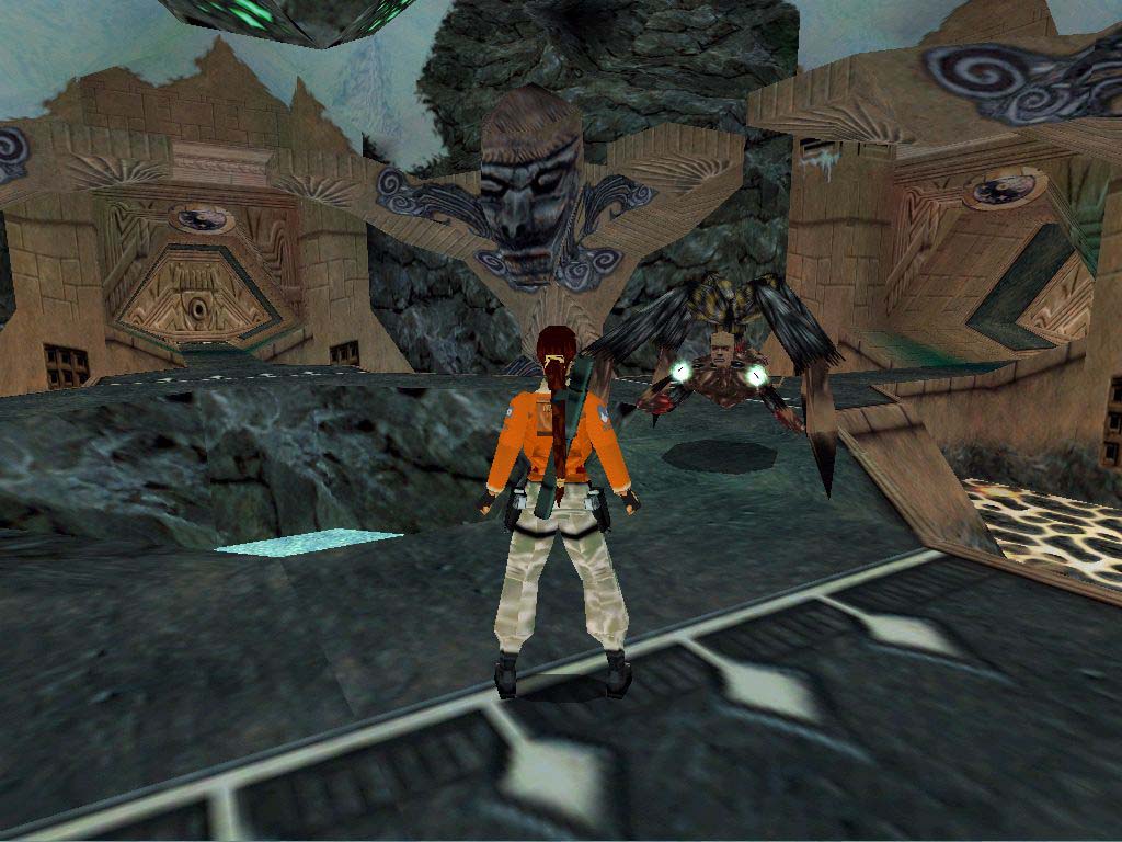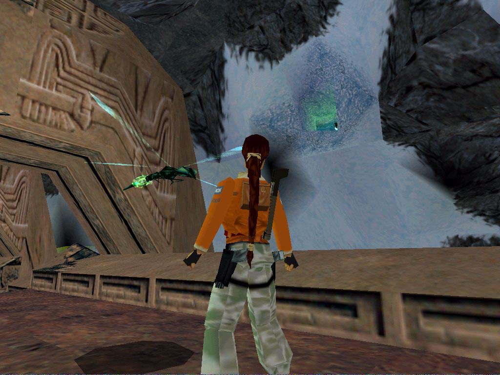 Ugorjunk fel a létrára az egyik bejárat mellett, majd haladjunk felfelé a plafonba csimpaszkodva, és a köveken ugrálva, és felmászva, majd lecsúszva. Itt végezzünk az összes ellenséggel, vigyázva, nehogy megpörköljenek minket. Majd menjünk a helikopter felé, ha leszállt, a kapu akkor nyílik ki. Lara birtokba veszi a gépet, és veszélyes manõverek közepette elhagyja a helyszínt.