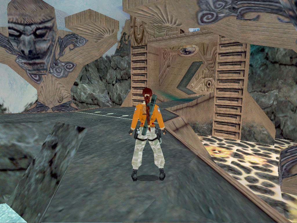 Itt a tûzzel fogunk játszani, bejutva trükközhetünk kicsit, aki szemfüles és felmászik a tömbre, a plafonon a tüzes állványok térképét veheti szemügyre. És ha ott állva fáklyát gyújt, a térképen fényleni kezdenek a veszélytelen állványok. Ezeken ugrálva, és végül az elsõsegély csomagosat használva (ez ugyanis késõbb gyullad meg), jutunk a terem végébe. Itt, ha elég gyorsak vagyunk, a kezdeti csapóajtót átugorva egy elsõsegély csomaggal lehetünk gazdagabbak a tüskés farönk elõtt. Ugorjunk le a következõ terembe, ahol a faliszobrok tüzet köpnek, mellyel megvilágítják az amúgy láthatatlan platformokat. Rajtuk ugrálva jussunk el a terem túlvégébe, a jobb oldali kar meghúzásával. Álljunk a párkány szélére, helybõl ugrással kapaszkodjunk meg a láthatatlan platform szélében, de csak akkor nyomjuk meg a felhúzódzkodás gombot, amikor a fej elkezd tüzet köpni - így mire Lara felhúzza magát, pont végez, és helybõl ugorjunk a következõ platform felé, melynek ismét a szélében kapaszkodhatunk így meg, az eljárás ugyanaz, míg a végére nem érünk. A szobában cselezzük ki a tûzcsapdát, vegyük fel az utolsó Oceanic Mask-ot, és hagyjuk el a kinyílt ajtón a helységet.