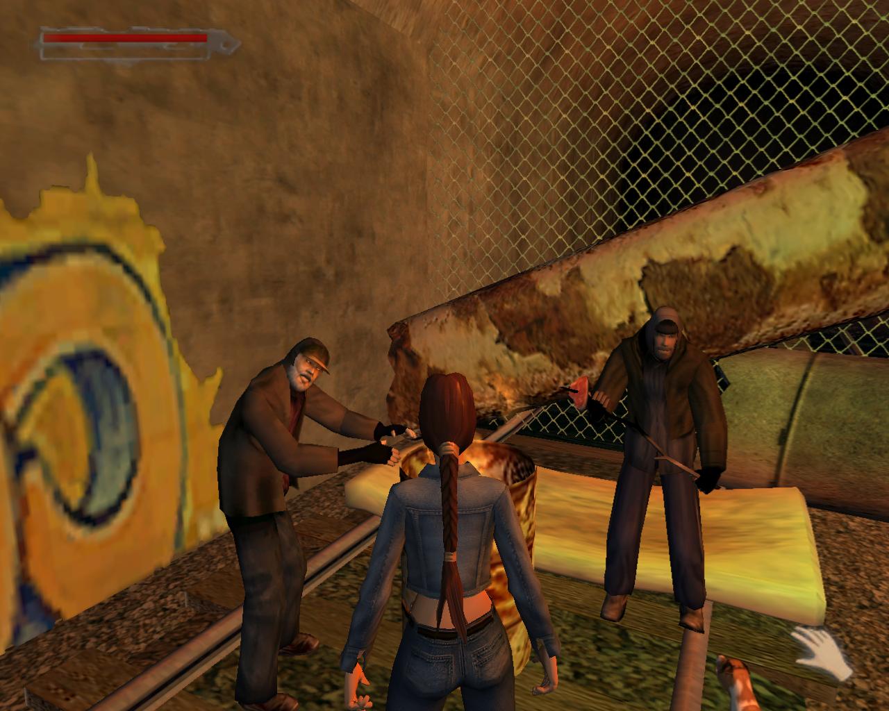 Hagyd el a kocsit és fordulj balra. Szemben veled, az alagút dróttal elzárt végénél két hajléktalant látsz, akik egy égo hordó körül melegednek. Elegyedj szóba velük.