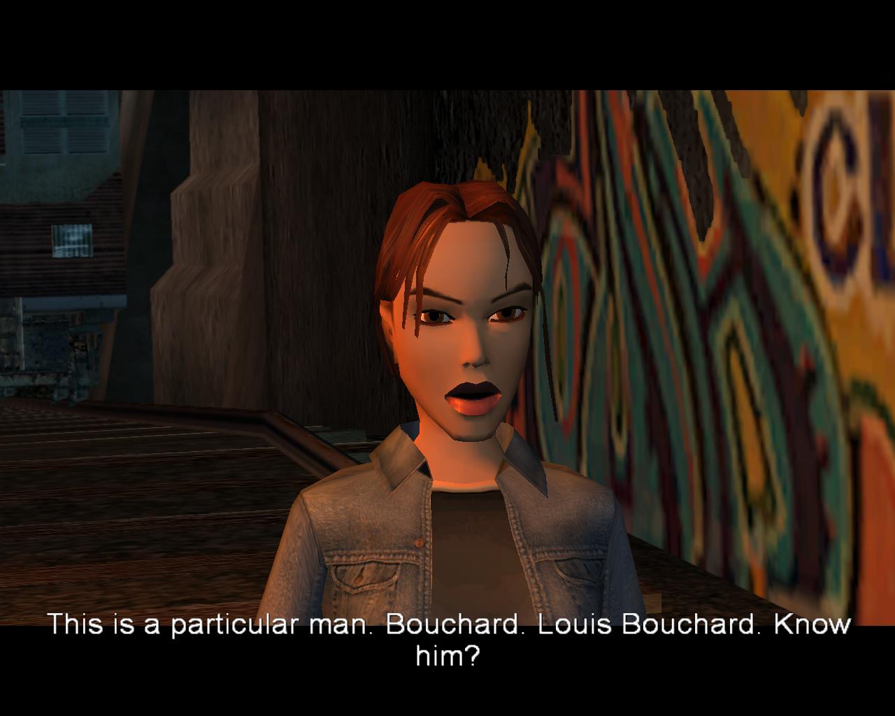 Lara: Jó. Útbaigazításra van szükségem. Egy Bouchard nevu férfit próbálok megtalálni. Ismered?