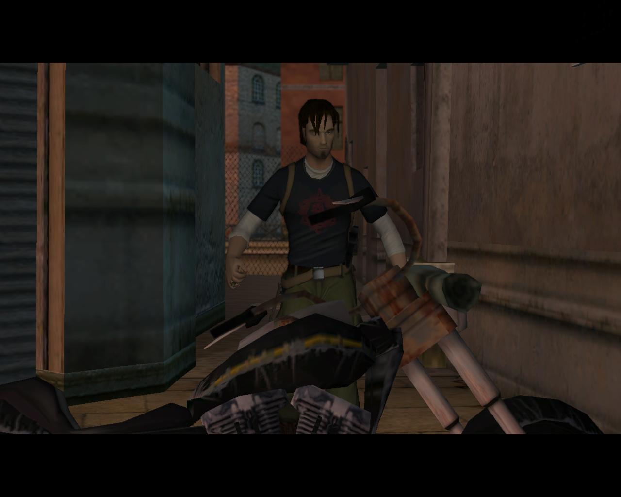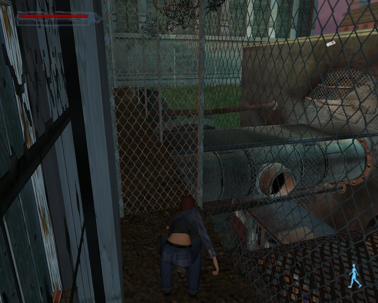 Miután felvetted az egészségcsomagot, fordulj jobbra. A falon, a leomlott vakolat alatt is drót van. Ugorj oda és kapaszkodj meg bent. (Ha akarsz, mászhatsz a cso túlsó oldalán lévo dróton is). Kezdj el felfelé mászni. Miután felértél mássz el jobbra, és ess le a fémhídra. Fordulj jobbra. Egy újabb fémhidat fogsz látni. Ugorj át rá egy nekifutásos-kapaszkodásos ugrással. A szemben lévo házfalon (Lumiere felirattal) van egy kis perem. Ugorj át rá. Fordulj jobbra és sétálj be a dróttal elzárt területre. Némi pénzt és egy rúd csokoládét találsz itt. Miután felvetted oket ugrálj vissza arra a fémhídra, amelyiken eloször voltál. Fordulj balra és sétálj a végéhez. Itt fordulj kissé jobbra. Ezen a helyen hiányzik a drót, át tudsz ugrani a peremre, ahol egy férfi áll. Fuss el mellette, majd a sarkon fordulj be jobbra. A lépcso alján találsz egy köteg pénzt. Szaladj vissza a férfihoz és beszélj vele.