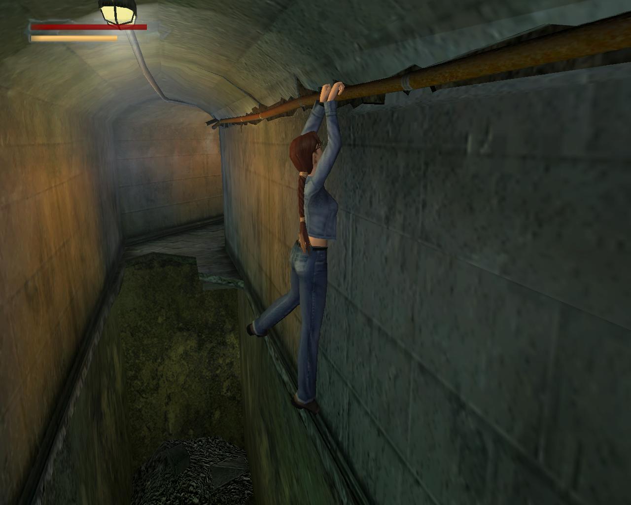 Tégy hát így. A gyökerekben kapaszkodva fel tudsz mászni a kis padlórészre. Szerencsére, a jobb falon van egy cso, amin el tudsz függeszkedni balra. Fordulj felé, és állj szorosan a baloldali perem mellé, mert különben lehet, hogy nem lesz annyi erod, hogy átérj. Ha leestél, fordulj jobbra, és menj a járat másik végébe, ahol balra egy kis üreget látsz. Kússz be, majd jobbra. A következo járatban fordulj újra jobbra, és mássz fel a gyökerekkel átnott falon. Próbáldj meg újra átfüggeszkedni. Ha átértél, menj tovább a folyosón. Itt szintén rozoga a padló, és a jobb falon is repedés fut végig. Lépj a rossz padlóra, ami lecsuklik, és Lara csúszni kezd. Ekkor ugorj egyet elore, és a szemközti kis padlódarabon fogsz landolni. Ha beleestél volna a vízbe, akkor két lehetoséged van.