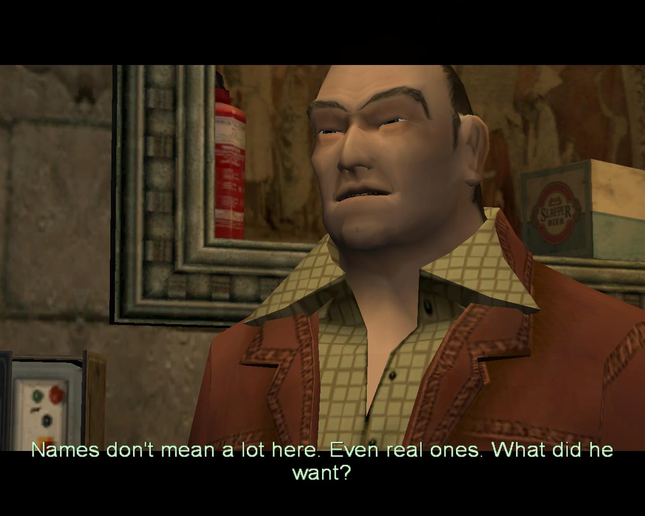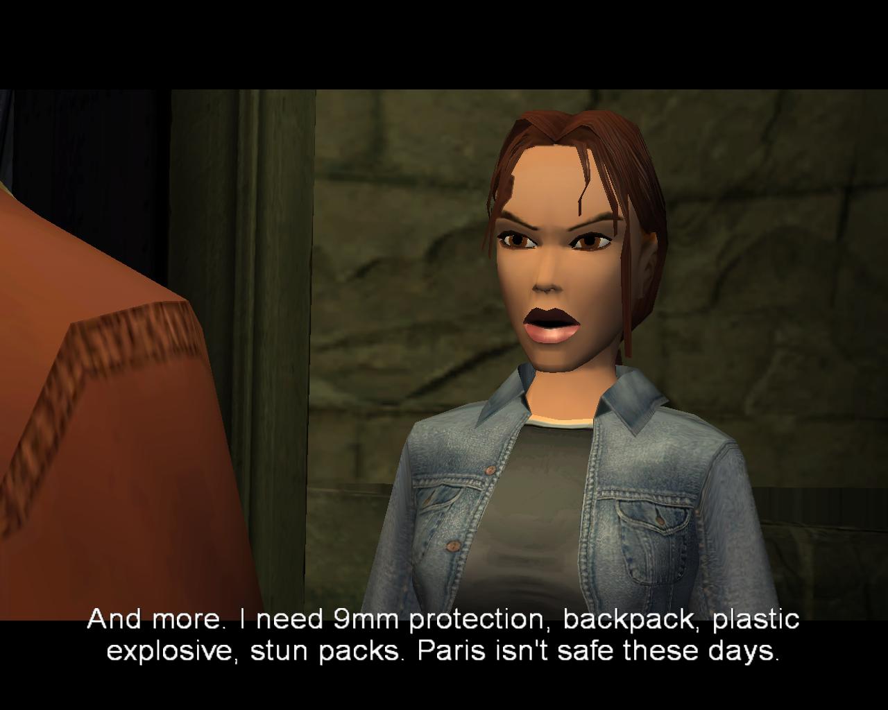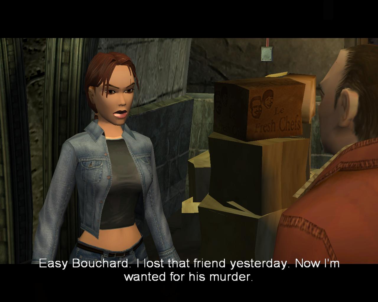 Louis Bouchard: Volt egy hír egy Monstrum gyilkosságról korábban. Mit tudsz errol? Lara: Semmit ami téged érdekelne. Louis Bouchard: Meg lennél lepve, hogy a Monstrum mennyire érdekel engem. Lara: A barátom...? A Louvre...? Louis Bouchard: Igen, az akadémikus. Be akart jutni a legutóbbi régészeti ásatásokhoz a Louvre-ban. Te is ezt akarod? Lara: És mégtöbbet. Szükségem van 9mm-es védelemre, hátizsákra, plasztik robbanószerre, kábító töltetekre. Párizs nem biztonságos mostanság. Louis Bouchard: Kinek? Te nyilvánvalóan tudsz vigyázni magadra. Lara: Nálad van, ami kell nekem? Louis Bouchard: Tudom, hogy kinél van. Daniel Rennes-nél. O a Rue St. Mark és a Cours la Seine sarkán lévo zálogházban dolgozik. |