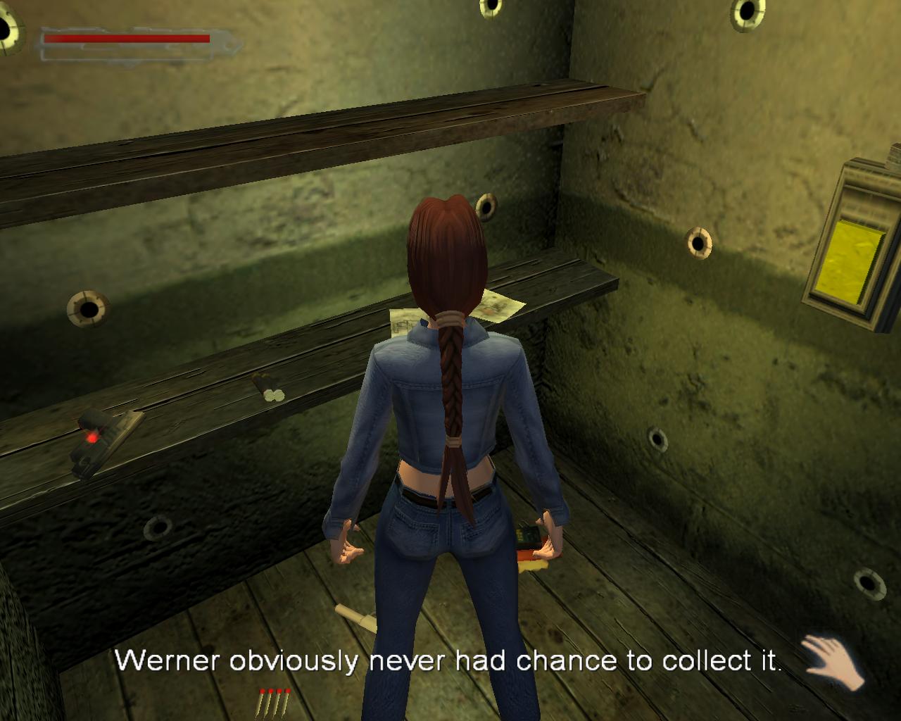 Lara belép a folyosóra. Egy gonosz tekintetu alak lép ki Rennes boltjából, és majdnem fellöki. Lara belép a zálogházba, és körülnéz. A lámpa le van szakadva, és a pult is romokban áll. Odalép, és leteríti az útleveleket.