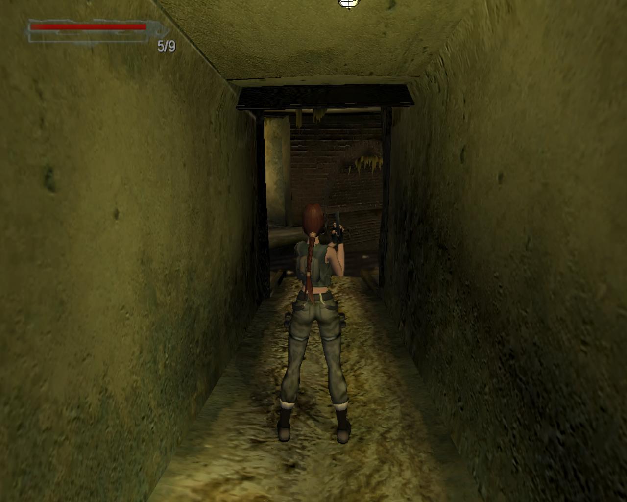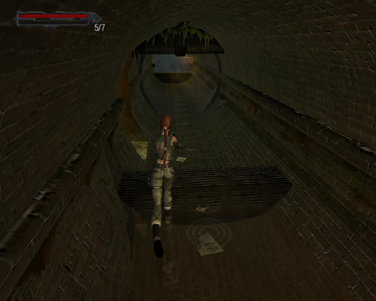 Egy kis terembe jutsz, ami félig megtelt vízzel. A közepén egy cso van a plafonban, ahol egy létra vezet felfelé. Ússz a létrához, kapaszkodj meg bent, és kezdj el mászni felfelé. Fent egy szelepet találsz szemben, és egy agresszív patkányt. Menj oda a szelephez, és forgasd el. Újabb piros lámpa vált zöldre. Fordulj balra. Szemben van egy kis folyosó. Sétálj végig rajt. Útközben lesz egy cso, amibol erosen szivárog a goz. Ezen a helyen loszert találsz a padlón. Vedd fel, és menj tovább egyenesen. Az ajtón át lépj ki a csatornába. Fordulj jobbra. Ez az út a gyujtocsatornába vezet. Ha odaértél, fordulj balra, és menj a vékony, függöleges lefolyócsohöz. Mássz, fel rajt, függeszkedj balra, és húzd fel magad a platformra. Fuss körbe balra, a sárga-feketére festett keskeny hídhoz. Sétálj át rajt a túlsó oldalra. Forgasd el az itteni szelepet is. Ez valahol elzárhatja a lefolyót, mert az abban lévo víz szintje rohamosan emelkedni kezd, mígnem eléri a körülötte futó koperemet. A gépen lévo egyik piros lámpa zöldre vált. Fordulj jobbra, és sétálj a platform végéhez. Itt találsz egy kis loszert. Balra a fejed felett, a falon egy létra vezet felfelé, de az alja leszakadt. Lépj a falhoz, és ugorj fel. Lara elkapja a létrát. Mássz fel rajt, majd a tetején szállj le balra. Egy újabb platformon vagy. Sétálj a végéhez. Jobbra van egy létra. Mássz fel rajt, majd a tetején szállj le balra. Jobbra a falban van egy igen vastag cso. Innen ömlik az a rengeteg víz. Balra egy másik figyelmeztetojelzéses kis híd van. Sétálj át rajt. Nagyjából félúton Lara megszólal: