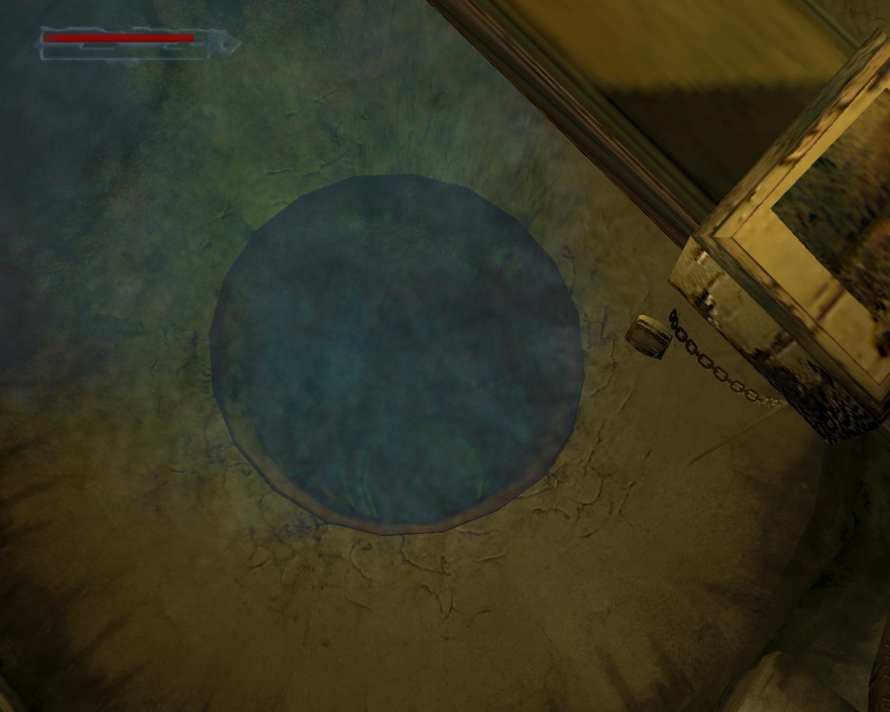 Vagy: Ugorj fejest a vízbe. A jobboldali csatornától balra van egy kis létra, amin ki tudsz mászni a medencébol. Fordulj jobbra. Elotted balra egy létra van a falhoz erosítve.