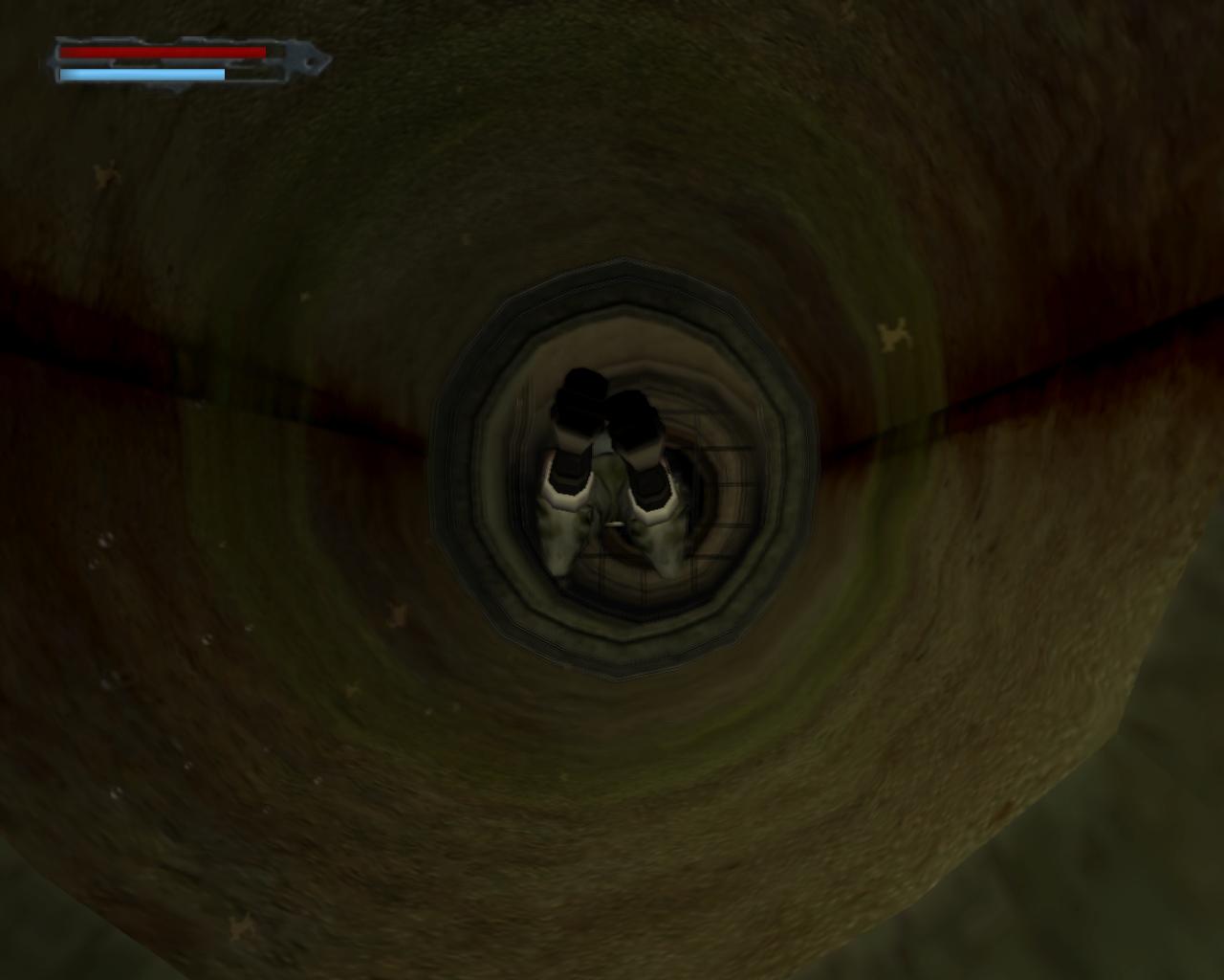 Ugorj át szembe, a következo platformrészre. A végén jobbra lesz mégegy utolsó szelep. Forgasd el, és az utolsó piros lámpa is zöldre fog váltani. A központi gyujtocsatornában eláll a vízfolyás, és a csoben, ahonnan a víz kifolyt, szabaddá válik az ajtó. Fordulj jobbra, és ugorj át a vastag cso elotti platformra. A csoben lévo rács alatt át tudnál kúszni, és a cso végénél balra le tudnál csúszni a központi gyujtocsatornába vezeto egyik csatornába. Erre azonban csak akkor lenne szükséged, ha nem nyitottál volna még ki minden szelepet. Ehelyett menj tovább a platformon, míg az lejteni nem kezd. Itt állj meg. Szemben láthatsz egy ajtót, elotte egy platformot. Fuss neki, és ugorj át rá. Nyisd ki az ajtót, és egy ismeros folyosóra jutsz. Menj végig rajt, majd a sarkon fordulj jobbra. A központi gyujtocsatorna tetején lévo keskeny hídnál vagy. Sétálj át rajt, a falban lévo cso irányába. A végénél fordulj balra, és ugorj a csobe. A belsejében van egy kisebb átméroju cso, ajtóval. Mássz bele és nyisd ki az ajtót. Sétálj a cso végéhez.