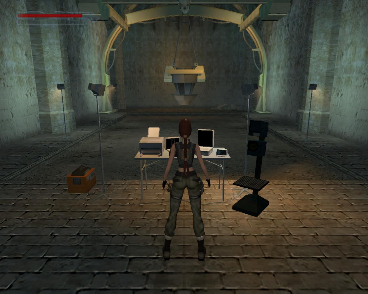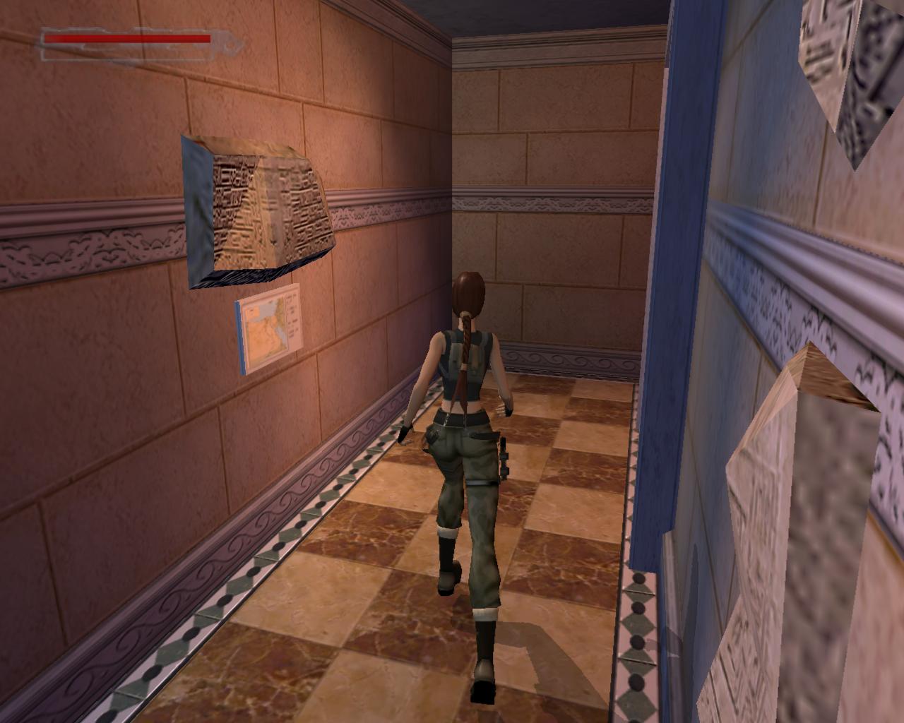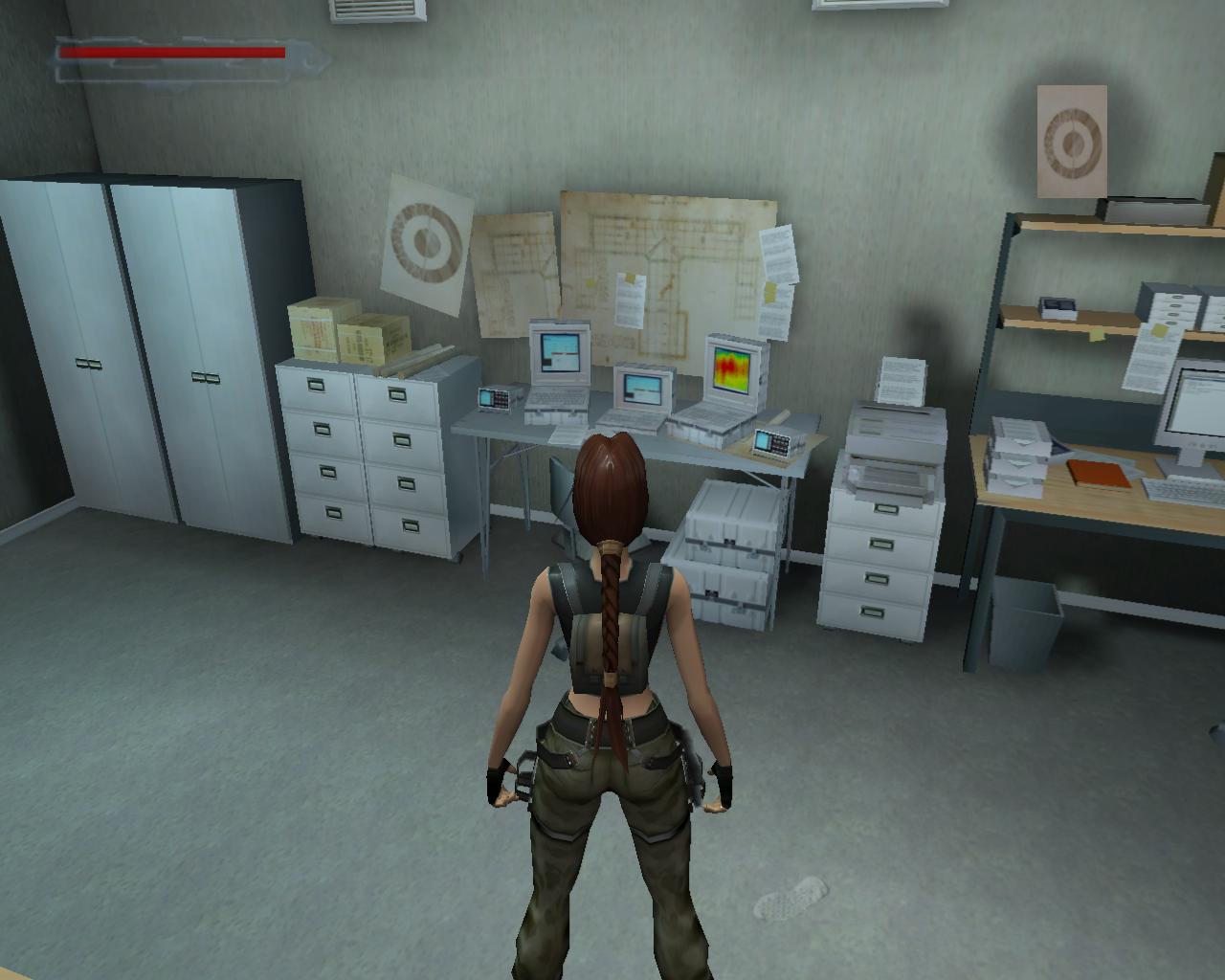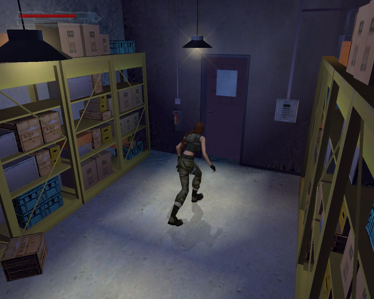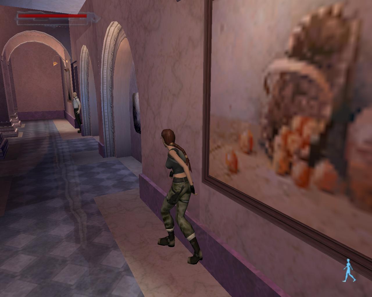 Fordulj balra, és indulj el visszafelé, ahonnan a pálya elején jöttél. Juss át a lézereken, és ne feledd, ha hozzájuk érsz, akkor egy fegyveres or siet a helyszínre. Tehát az elsoket a falhoz simulva kerüld el, a keresztezett lézerek alatt pedig mássz át. Menj balra az ajtóhoz. Ha valamikor aktiváltad a riasztót, akkor ezt most vasrács zárja le, de szerencsére a kártya ezt feloldja. Nyisd ki és lépj be a galériába. Mint láthatod, a lézerek eltuntek, úgyhogy könnyedén átszaladhatsz a másik ajtóhoz. Fuss körbe a folyosón, ki a lépcsoházba, majd le a lépcson a zárt ajtóhoz. Most már gond nélkül ki tudod nyitni. Bent egy kis egészségcsomagot és kötszereket találsz. Menj ki, fel a lépcson, végig a folyosón, szaladj át a galérián, majd ki az ajtón. Kerüld el a lézereket, és menj a folyosó túlsó végén lévo ajtóhoz, ami az ásatásokhoz vezet.