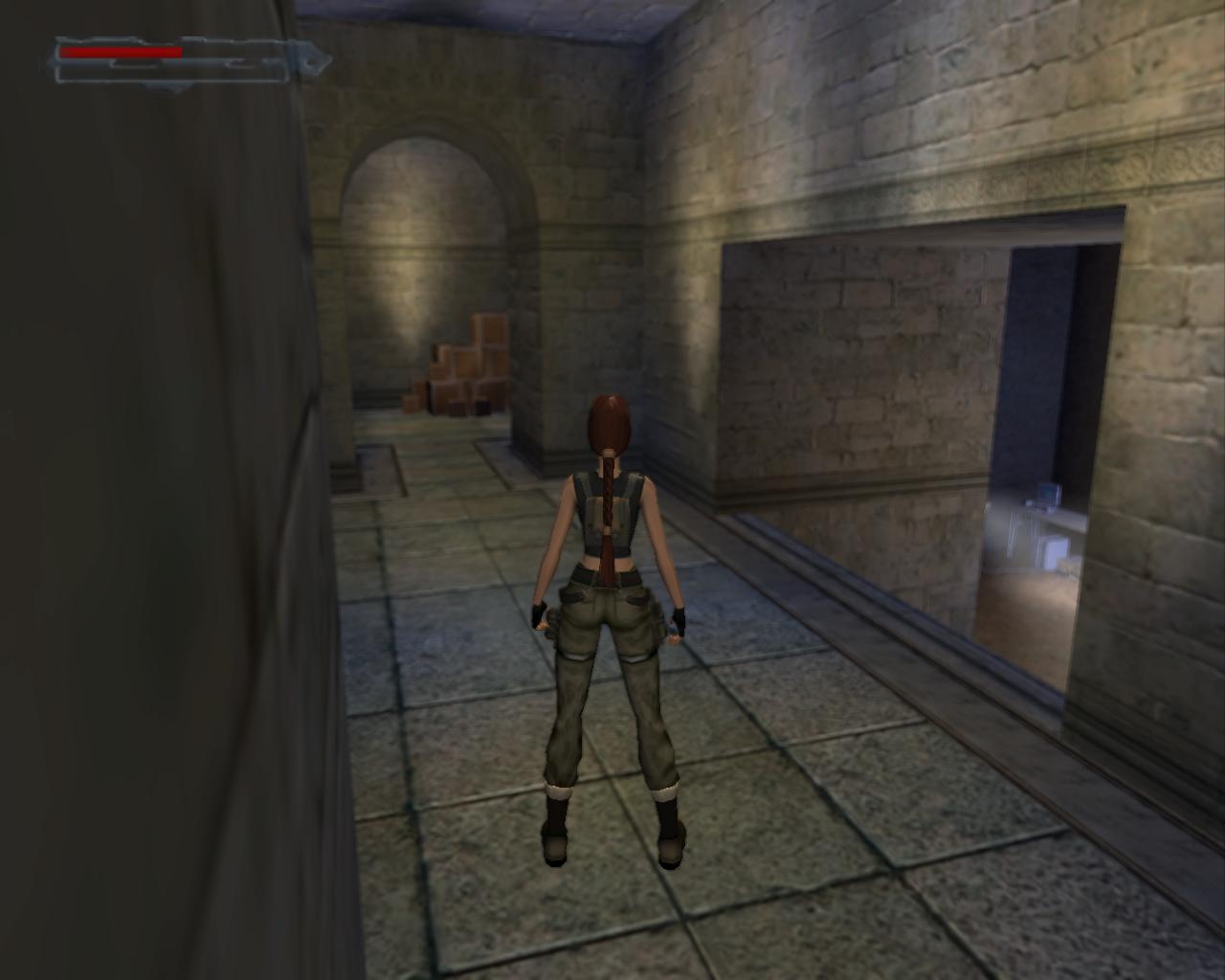 Menj tovább a peremen, amíg egy hézaghoz nem érsz. Itt egy esocsatorna vezet lefelé. Mássz le rajta, és lépj ki a keskeny peremre. Oldalazz el jobbra (Larának balra), amíg be nem tudsz állni az ablakba. Egy or járkál a folyosón, talán már te is észrevetted. Intézd el, mire egy kulcsot hagy hátra. Mássz ki az ablakon, oldalazz (vagy függeszkedj) vissza az esocsatornáig, és mássz le rajt. Szalad fel a galéria feletti kis fémállvány lépcsojén, nyisd ki az ajtót. Most már ki tudod nyitni az itteni két ajtót. Az egyik mögött kötszereket találsz, a másik kis helyiség üres. Mássz vissza az esocsatornán egészen a legfelso peremre. Itt kapaszkodj el jobbra, és mássz fel. Menj tovább jobbra, és ugorj át a teto peremére. Fuss végig a másik oldalra, ahol a vasráccsal elzárt rész van. Valahogyan le kellene feszíteni azt a lakatot... Mássz le a létrán. Itt jobbra egy ajtót találsz, ami mögött már ott vár rád a feszítovas. Mássz vissza a tetore, és feszítsd le a lakatot. Nyiss be, mássz fel a nagy egységre és mássz be a szellozojáratba. Egy létrára bukkansz; mássz hát le rajt. Fuss végig a szellozoben.